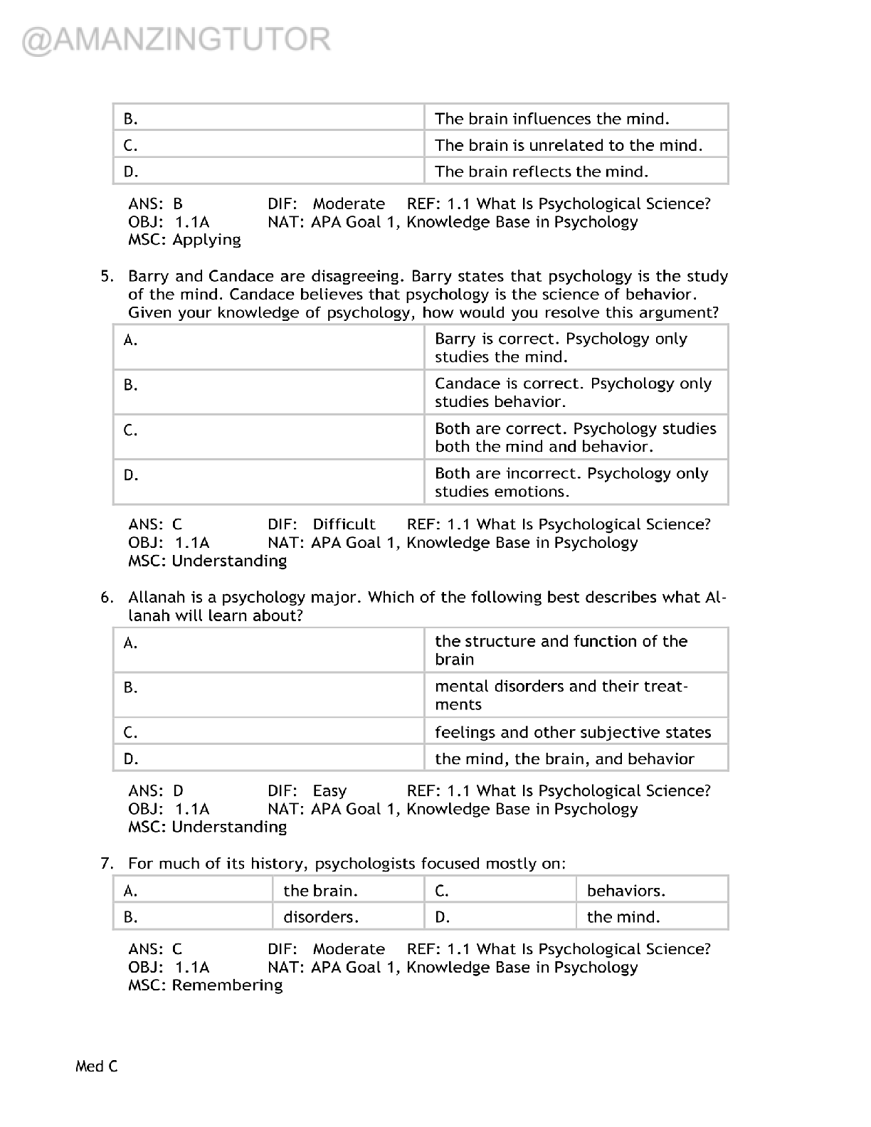 Test Bank for Psychological Science, 7th Edition by Elizabeth A. Phelps, Elliot T. Berkman, and Michael S. Gazzaniga