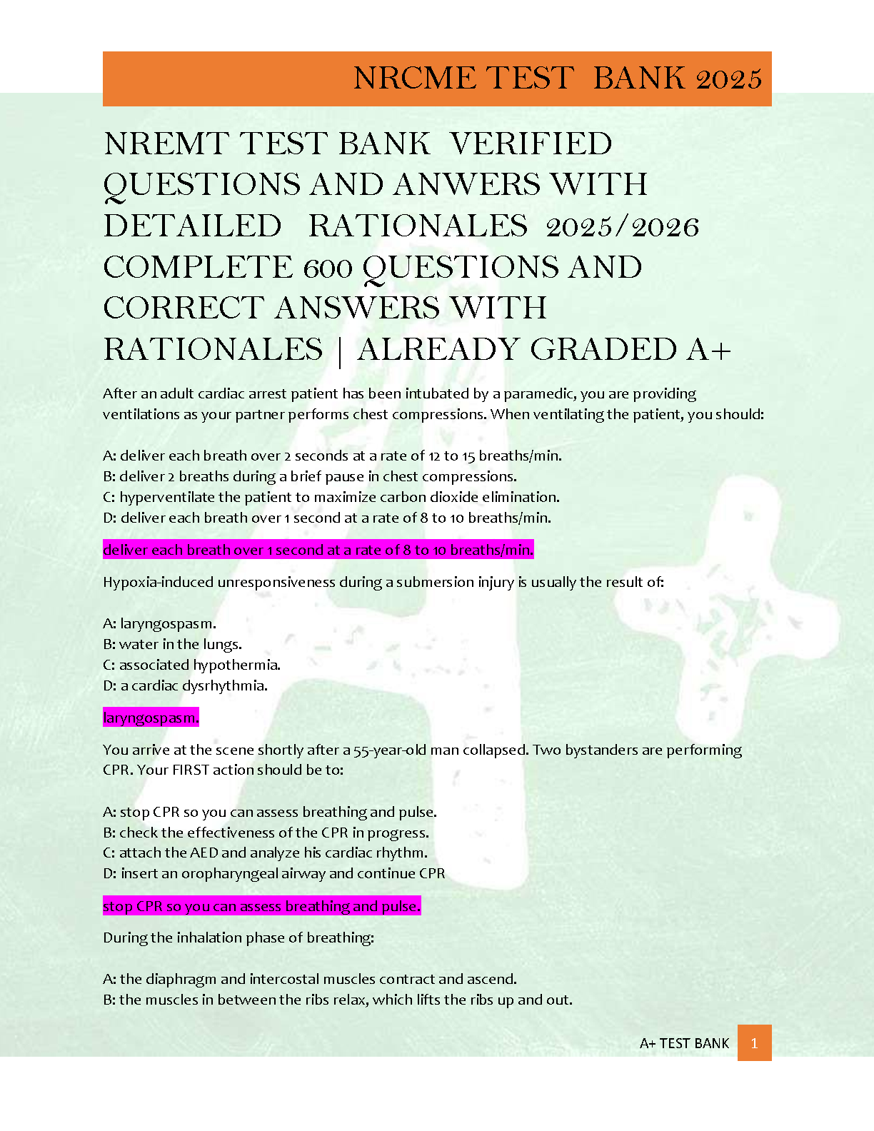 NREMT Test Bank 2025/2026: 600+ Questions & Answers with Detailed Rationales | Verified A+ Grade Study Guide