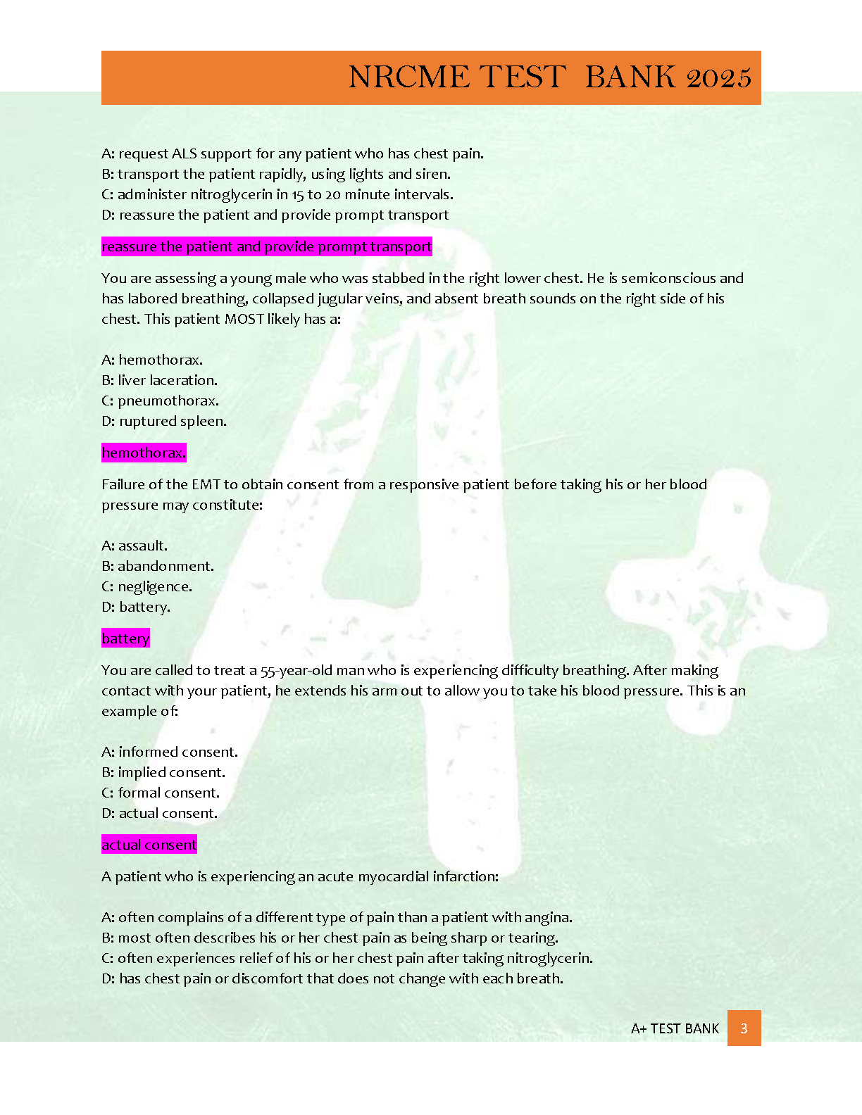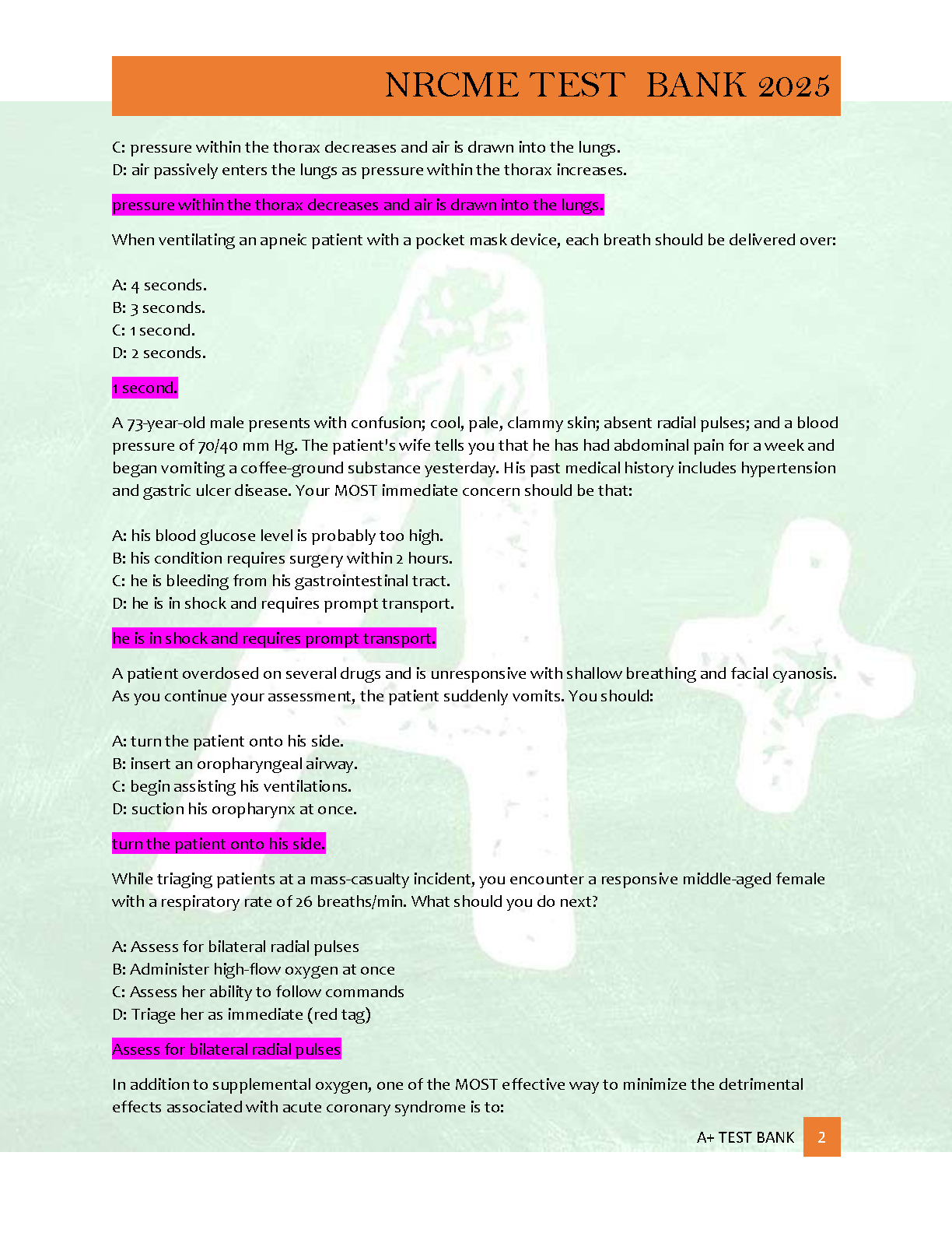 Ace your NREMT certification exam with our comprehensive 2025/2026 Test Bank. This A+ graded resource features over 600 meticulously verified questions, complete with correct answers and in-depth rationales for each. Designed to cover all key areas of the NREMT curriculum, this study guide provides the practice and understanding you need to master the material and pass your exam with confidence on the first try. Get immediate access to a proven tool for success.