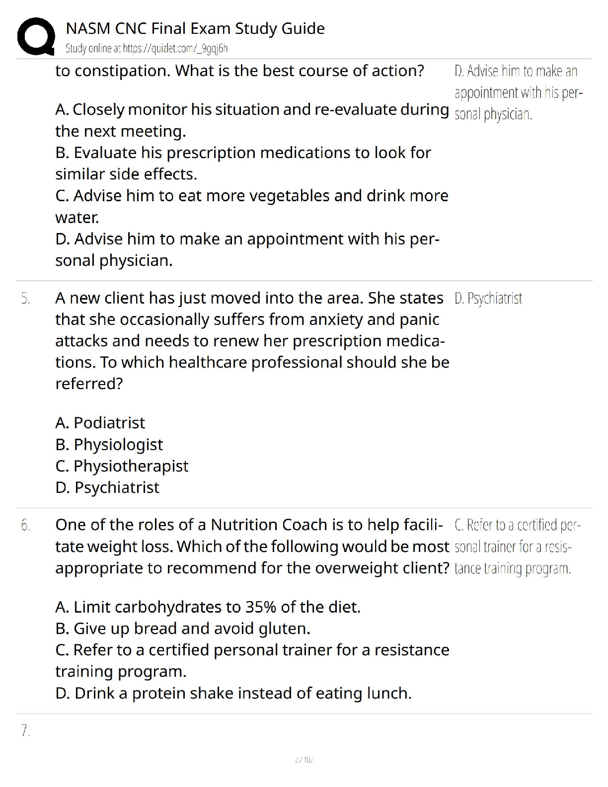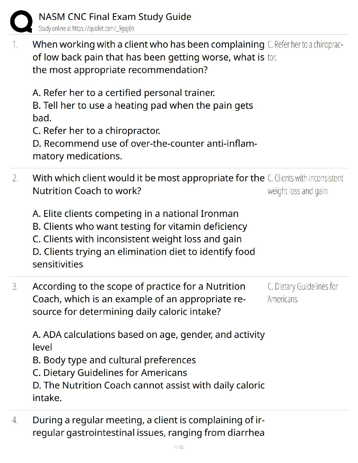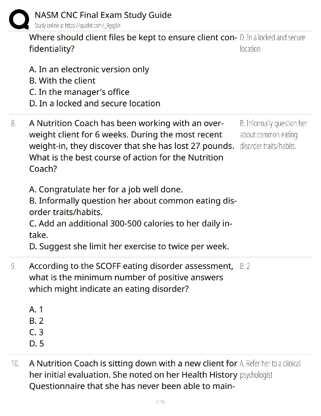 Unlock your potential and become a NASM Certified Nutrition Coach with our latest 2025/2026 Final Exam Study Guide. This essential resource is meticulously crafted to help you master all the core concepts, from client assessment to nutritional science and behavior change strategies. Featuring a comprehensive collection of practice questions and verified answers, this guide is your ultimate tool for success. Prepare with confidence, ace the exam on your first try, and avoid the stress and expense of resits. Start your rewarding career in nutrition coaching today!