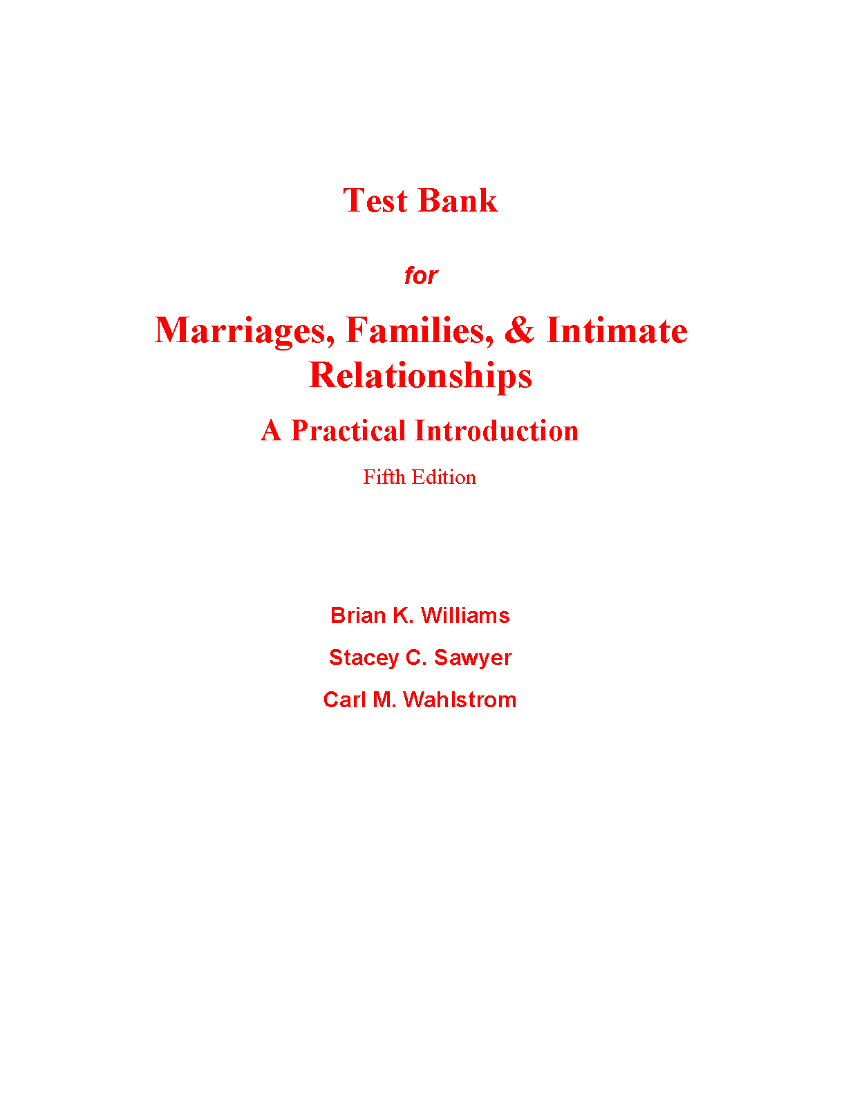Test Bank for Marriages, Families, & Intimate Relationships, 5th Edition by Brian K. Williams, Stacey C. Sawyer, Carl M. Wahlstrom