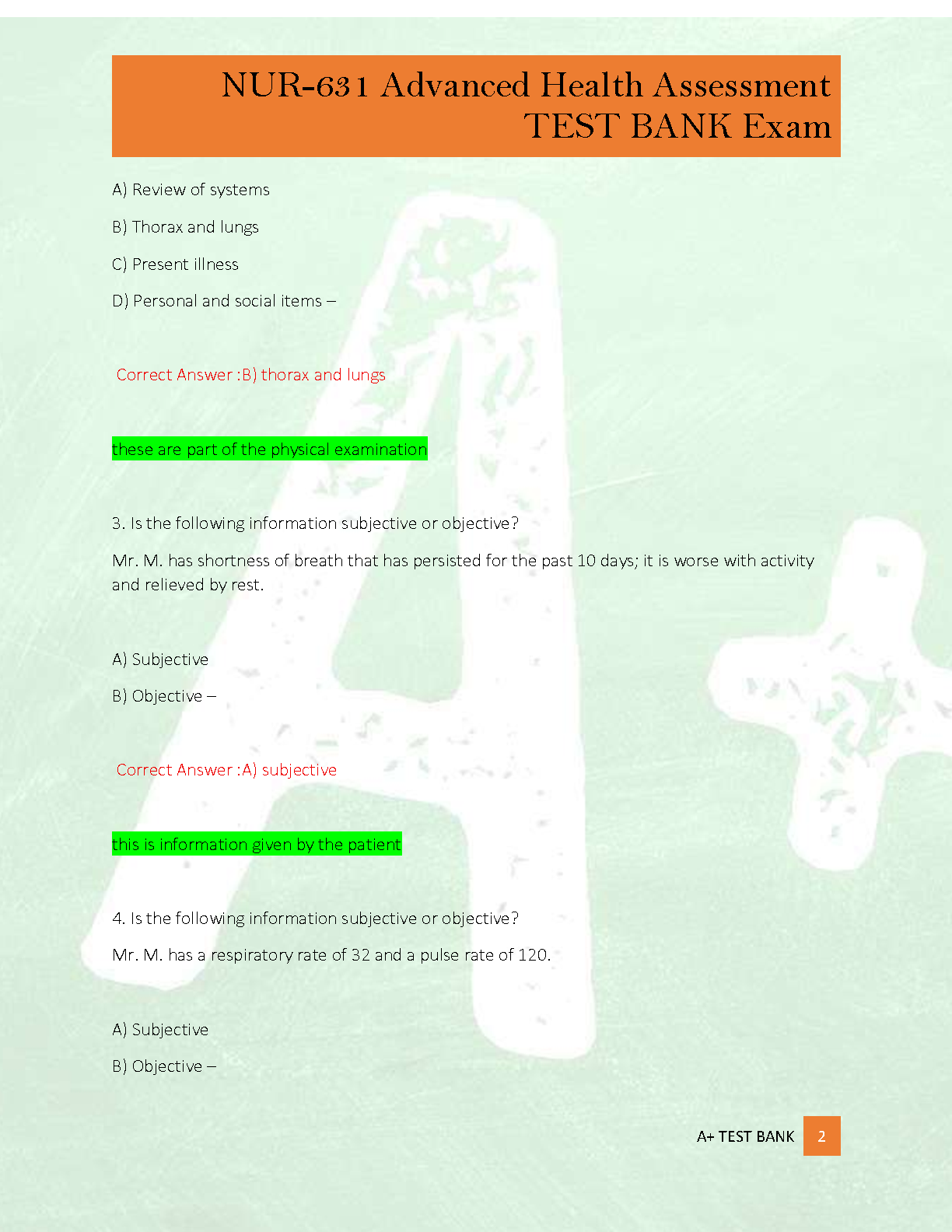 NUR-631 Advanced Health Assessment Test Bank | Bates' Guide to Physical Examination and History Taking, 13th Edition by Bickley, Szilagyi, Hoffman & Soriano