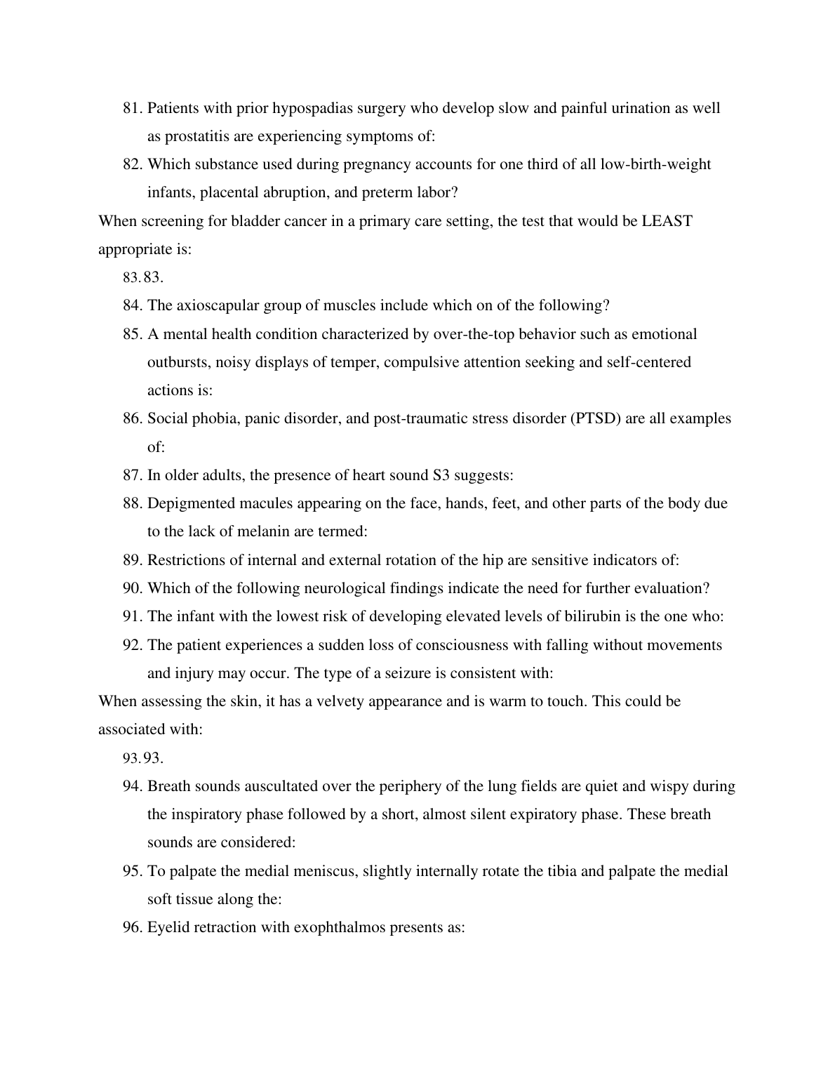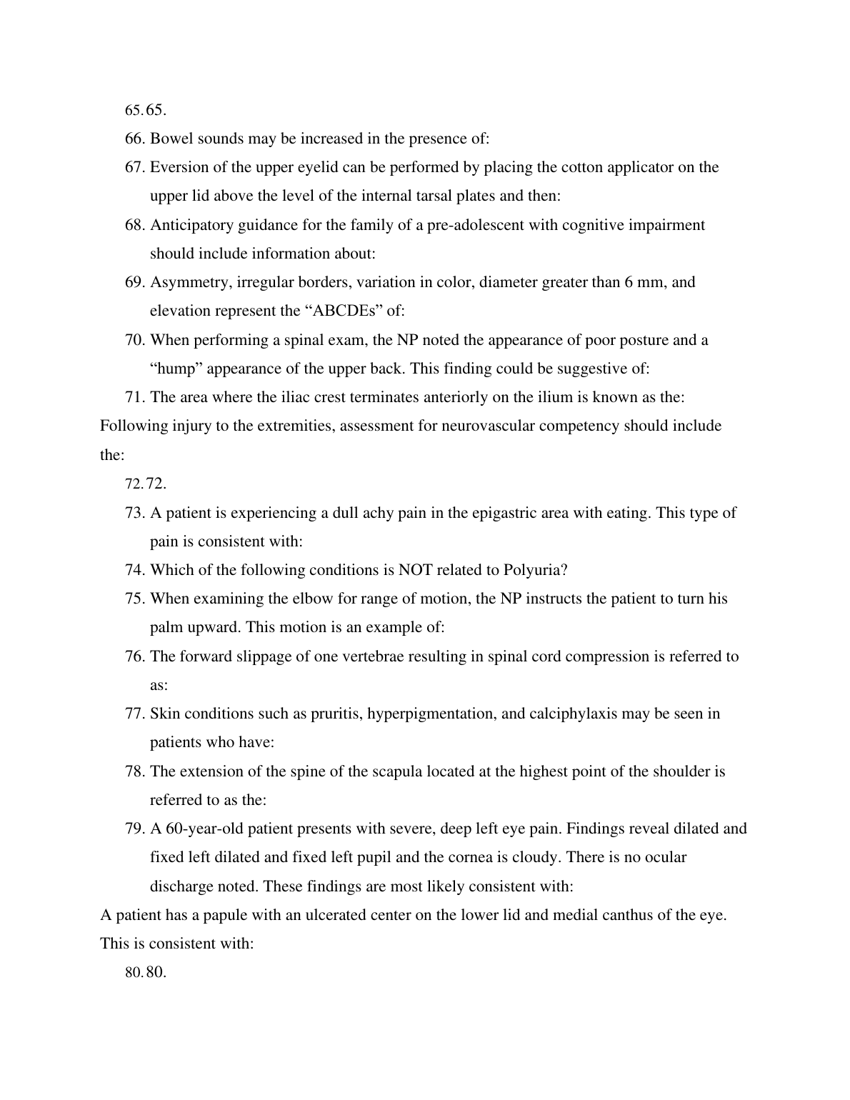 APEA 3P Test Bank 150 Questions and Correct Answers UPDATED 2022/2023 $16.00 APEA 3P Exam Prep-Dermatology Questions with Correct Answers and Explanations UPDATED 2022/2023 $16.00 APEA 3P Exam Prep- Dermatology Questions with Correct Answers and Explanations UPDATED 2022-2023 $16.00 APEA 3P Exam Prep- Sexual Health Questions with Correct Answers and Explanations UPDATED 2022/2023 $16.00 APEA 3P exam Questions UPDATED 2022-2023 $16.00 APEA 3P Practice Questions UPDATED 2023 $16.00 NR 509 APEA 3P Exam Week UPDATED 2023 $16.00 NSG 6001 APEA 3P Exam UPDATED 2022/2023 $16.00 APEA 3P Exam PrepNephrology/GU Questions with Correct Answers and Explanations UPDATED 2022/2023 $16.00 APEA 3P Exam UPDATED 2022/2023 $16.00 APEA 3P Exam | 75 All Correct Questions & Answers latest version 2022/2023 $16.00 NSG 6020 - APEA 3P Final Exam 2022 - UPDATED Questions And Answers $16.00 NR 509 APEA 3P Exam Week 8 WITH CORRECT ANSWERS UPDATED 2023 $16.00 NUR 634 - APEA 3P Practice Test Bank Questions and Answers UPDATED 2023 $16.00 GRAND CANYON UNIVERSITY NURSING NUR 634 APEA 3P EXAM QUESTIONS AND ANSWERS 100% CORRECT APEA 3P PRACTICE QUESTIONS UPDATED $16.00 APEA 3p Final Exam Questions and Answers UPDATED 2023 $16.00 NR 509 APEA 3P Exam Week 8 QUESTIONS AND ANSWERS UPDATED 2022/2023 $16.00 ALL APEA EXAM PACKAGE QUESTIONS WITH VERIFIED ANSWERS TEST BANK 2023 $18.00 NSG 6020 - APEA 3P Final Exam 2022 – Complete Set (530Questions with all Correct Answers) UPDATED $18.00 NUR 634 - APEA 3P Practice Test Bank UPDATED 2023 $16.00 APEA 3p Updated Answers for FINALEXAM 2022 $16.00 APEA 3P Exam Prep - Health Promotion Questions with Correct Answers and Explanations $18.00 APEA 3P Exam Prep- GI Questions with Correct Answers and Explanations UPDATED 2023 $18.00 APEA 3P Exam Prep- Women's Health Questions with Correct and Explanations UPDATED 2023 $18.00 APEA 3P EXAM PREP-PROFESSIONAL ISSUES ETHICS QUESTIONS AND ANSWERS WITH EXPLANATIONS UPDATED 2023 $18.00 APEA 3P EXAM Questions & Answers UPDATED 2023 $18.00 APEA 3P EXAM QUESTIONS AND ANSWERS UPDATED 2023 $18.00 APEA 3P EXAM REVIEW WEEK 2 NURSING 6023 UPDATED 2023 $18.00 NSG 6001 APEA 3P Exam / NSG6001 APEA 3P’s Exam UPDATED 2023 $18.00 NSG 6420 APEA 3P EXAM 157 QUESTIONS WITH CORRECT AND VERIFIED ANSWERS(LATEST 2023) $18.00