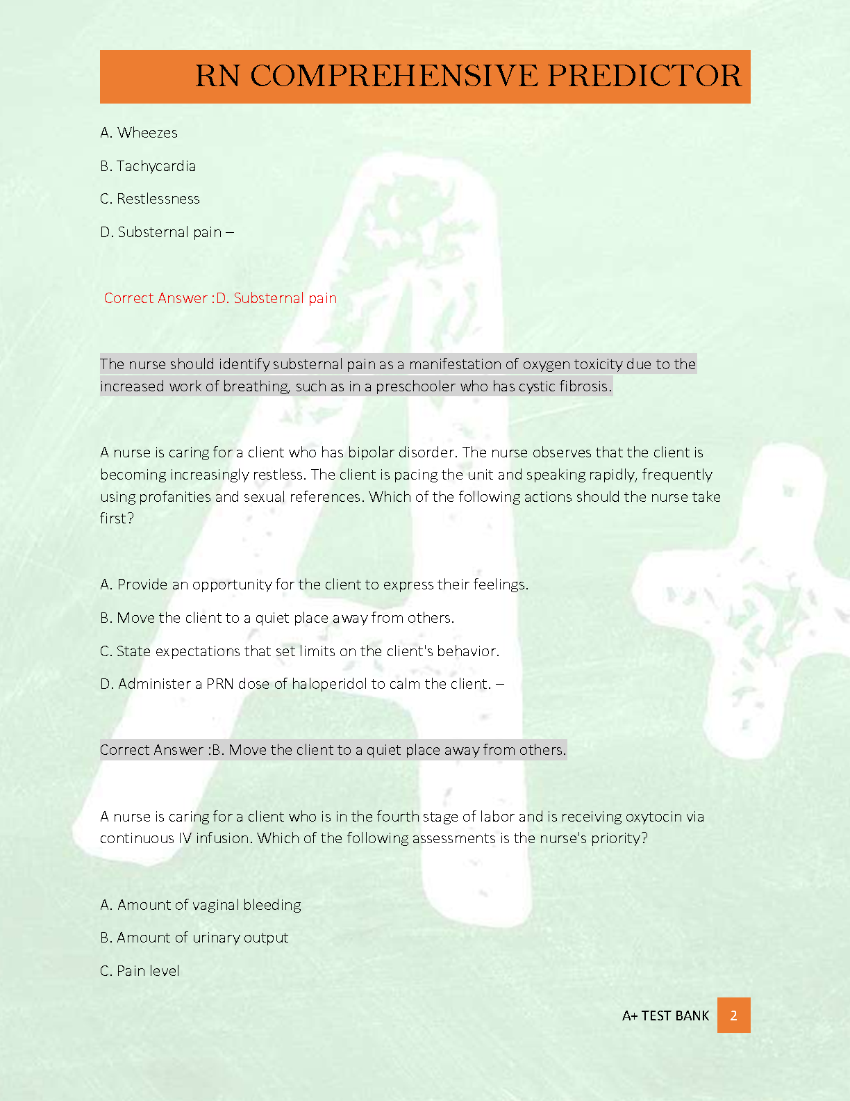 Prepare to excel on your nursing exams with the ATI RN Comprehensive Predictor 2024-2025 Test Bank. This essential study guide is fully updated with the latest Next Generation (NGN) version, providing a vast collection of real exam questions. Each question comes with a correct, detailed answer and a thorough rationale, ensuring you not only learn the right answer but also understand the underlying clinical reasoning. This resource is expertly designed to help nursing students build confidence, master critical concepts, and pass the ATI Comprehensive Predictor exam on their first attempt, avoiding costly and stressful resits. Get immediate access to this A+ graded material and take the next step in your nursing career.