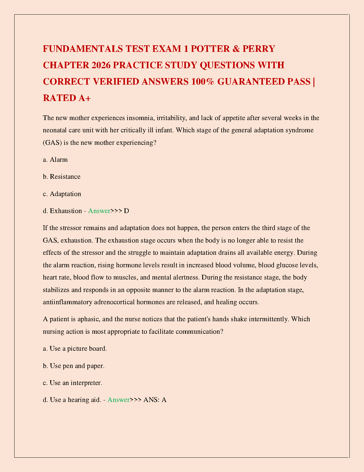 HackedExams is the website to download all resources for students who want to pass their exams on their first attempt. Our website offers all exam materials, including practice questions with answers, test banks, study guides, notes, summaries, and more for nursing, computer science, biology, psychology, law, and others. With resources from popular exam bodies like ATI, AQA, OCR, Edexcel, Comptia, Azure, and more, you'll easily find everything you need to get certified. Avoid resitting exams; trust in HackedExams.com to give you the resources to pass on your first attempt. Get access to exams from 2019 to 2023 and start your path to success today. "Avoid resits, get certified within days, and pass your exams on your first attempt."