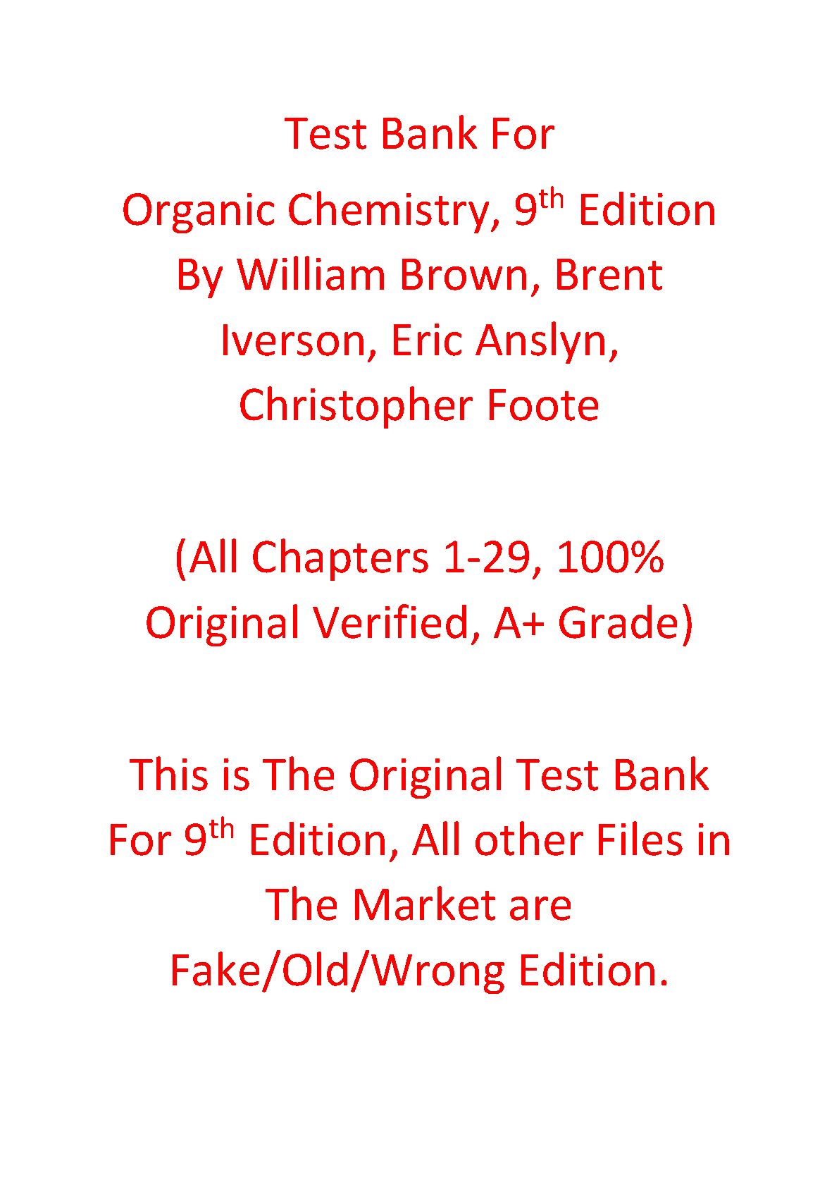 Test Bank for Organic Chemistry, 9th Edition by William H. Brown, Brent L. Iverson, Eric V. Anslyn, and Christopher S. Foote