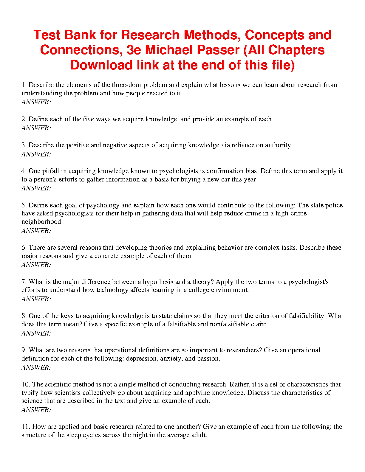 Test Bank for Research Methods, Concepts and Connections, 3rd Edition BY Michael Passer (All Chapters Download link at the end of this file). DOWNLOAD on www.hackedexams.com INSTANTLY.