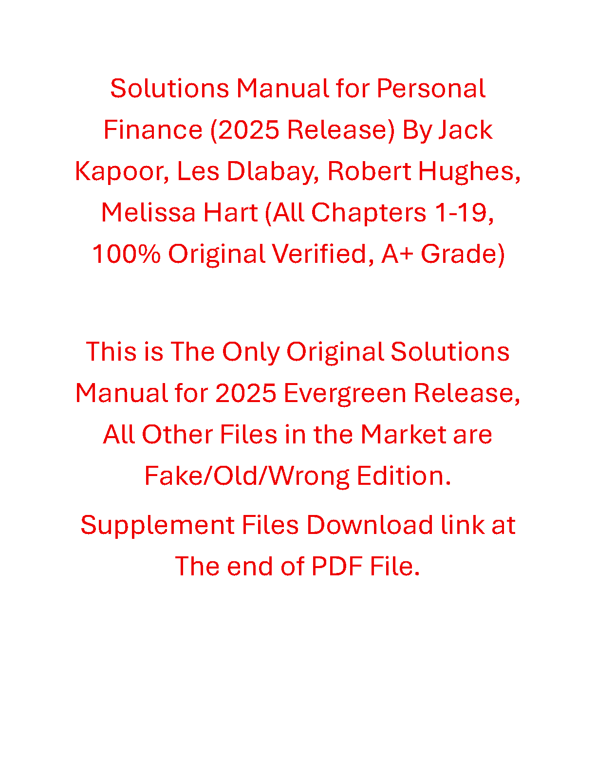 Achieve top grades in your Personal Finance course with the complete, verified Solutions Manual for the 14th Edition (2025 Evergreen Release) by Kapoor, Dlabay, Hughes, and Hart. This essential resource provides detailed, step-by-step solutions for every problem in all 19 chapters. Master complex financial concepts, confidently complete your assignments, and prepare effectively for exams with this 100% original and authentic study guide.