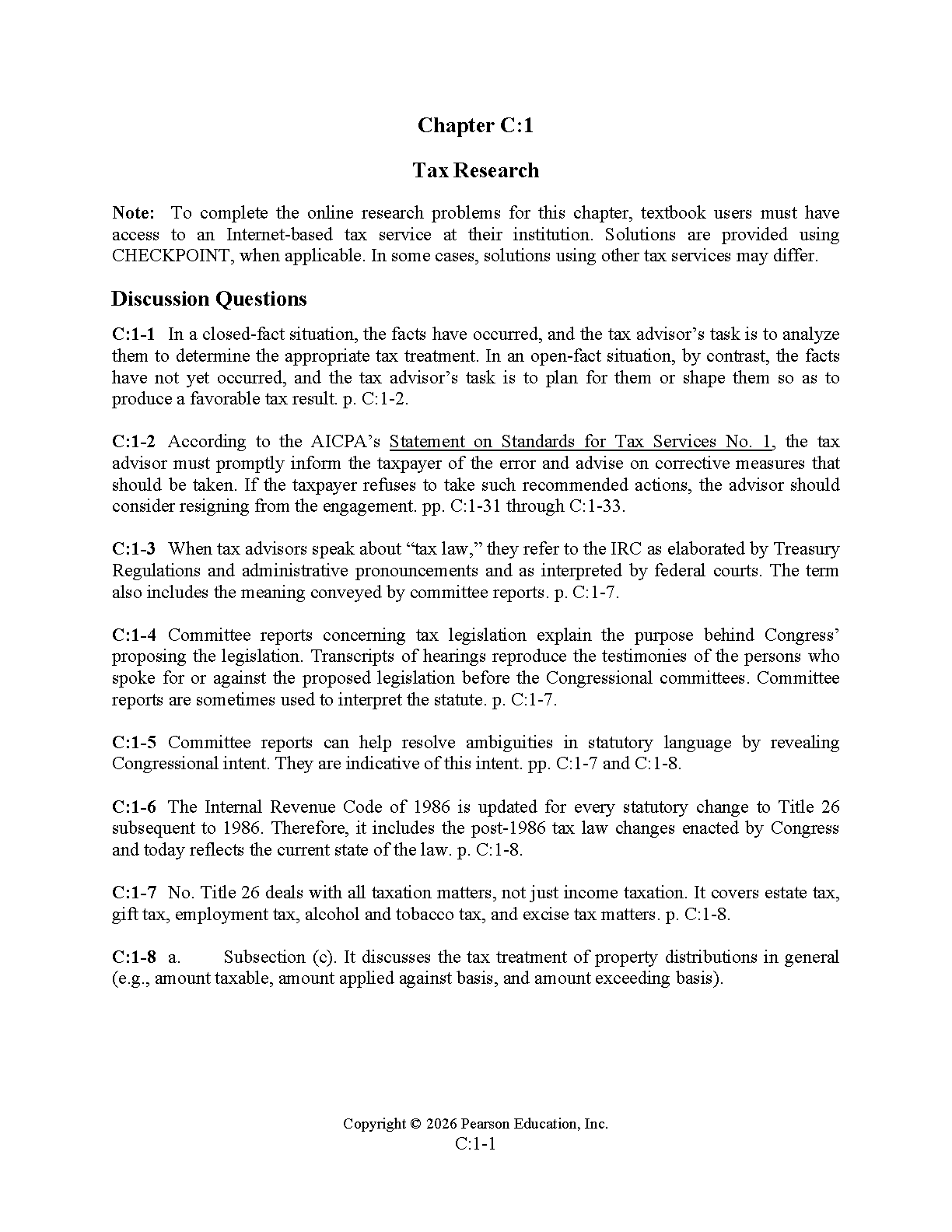 Solutions Manual for Pearson's Federal Taxation 2026: Corporations, Partnerships, Estates, & Trusts, 39th Edition by Timothy J. Rupert, Kenneth E. Anderson