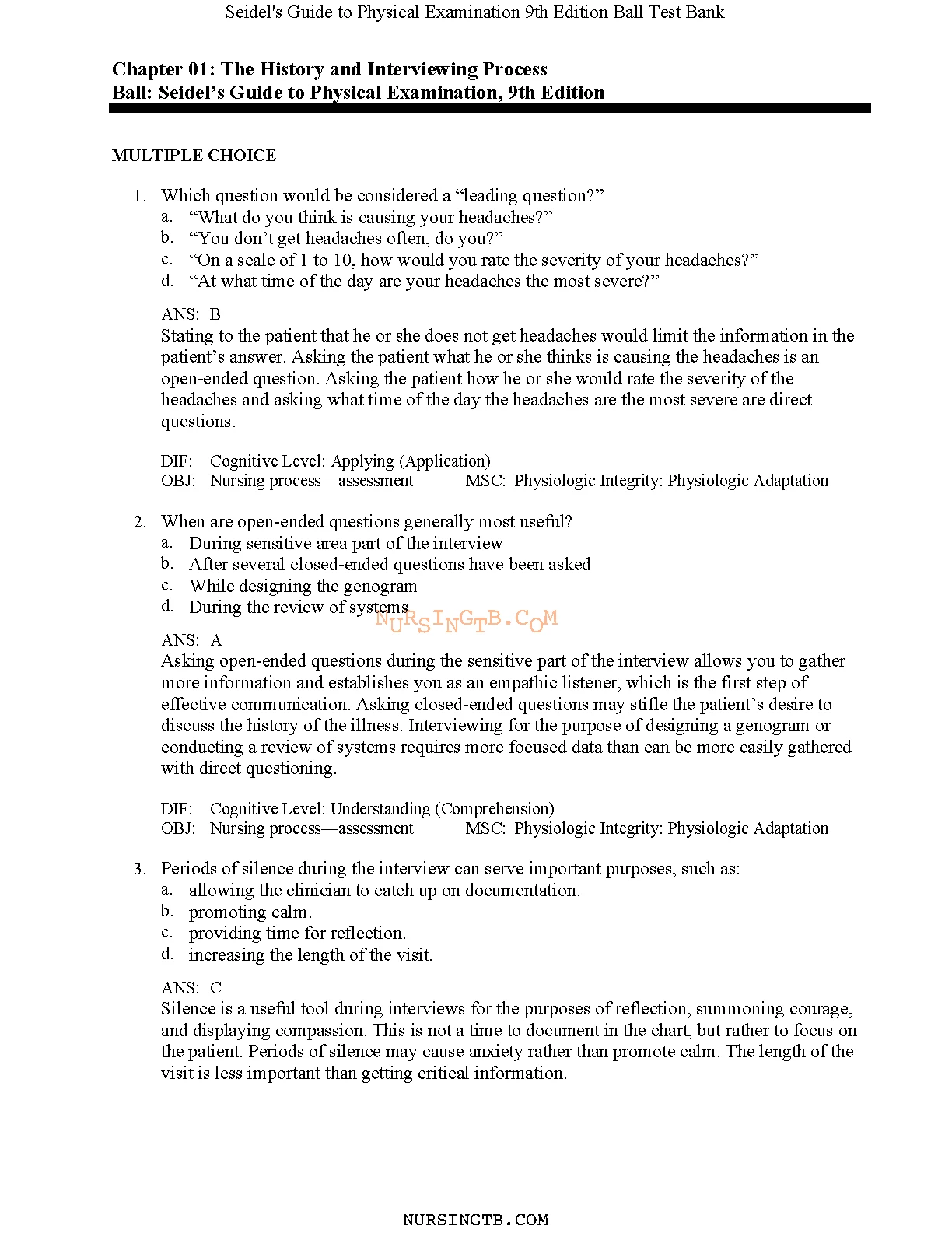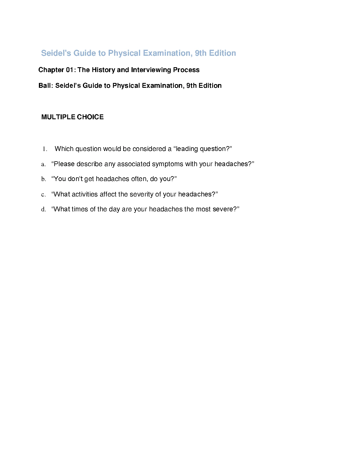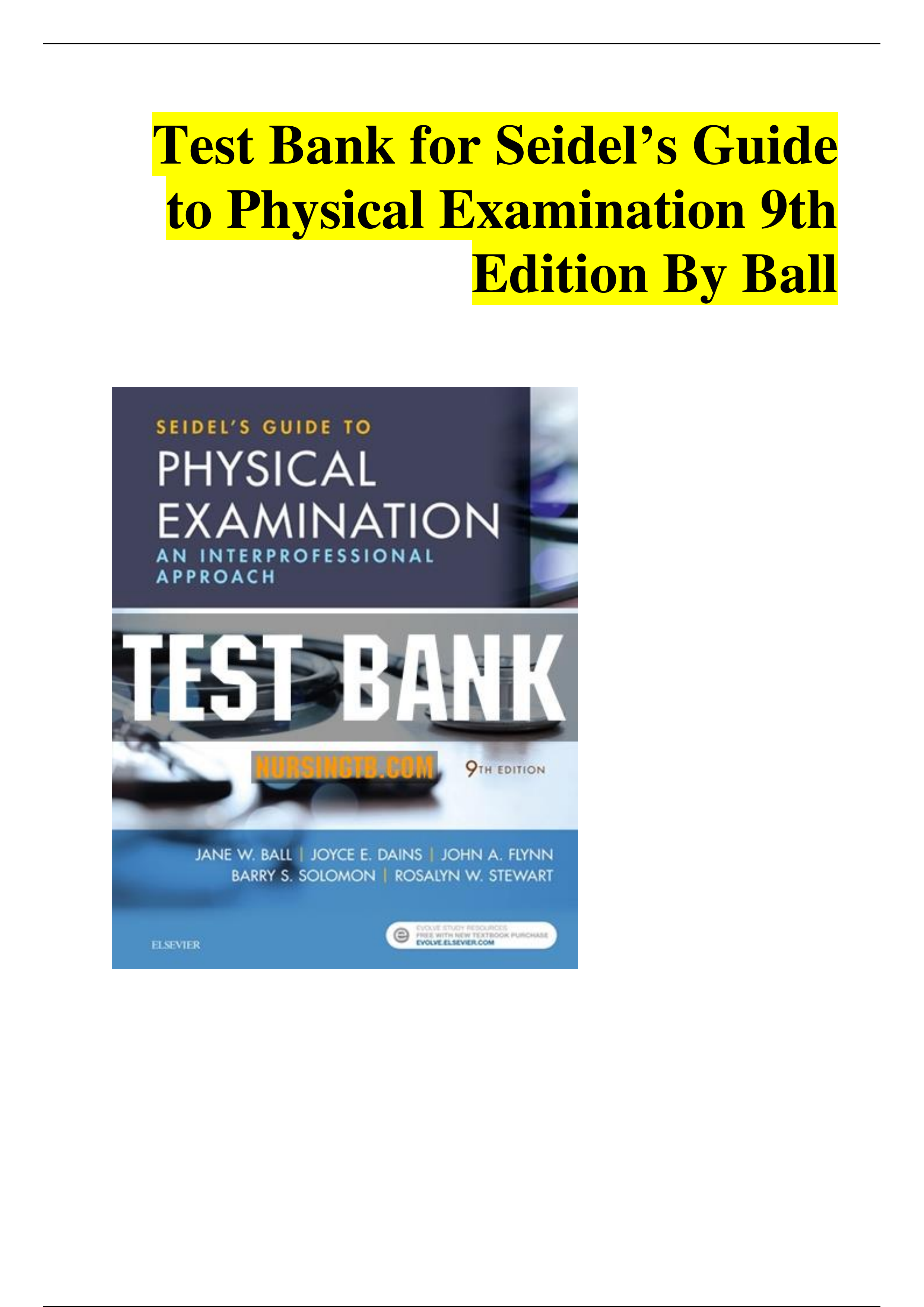 Test Bank for Seidel’s Guide to Physical Examination 9th Edition By Ball