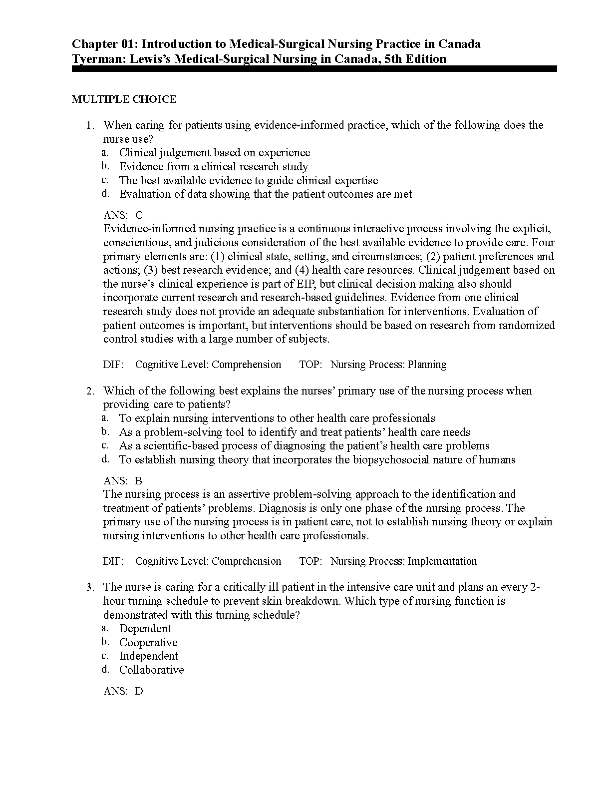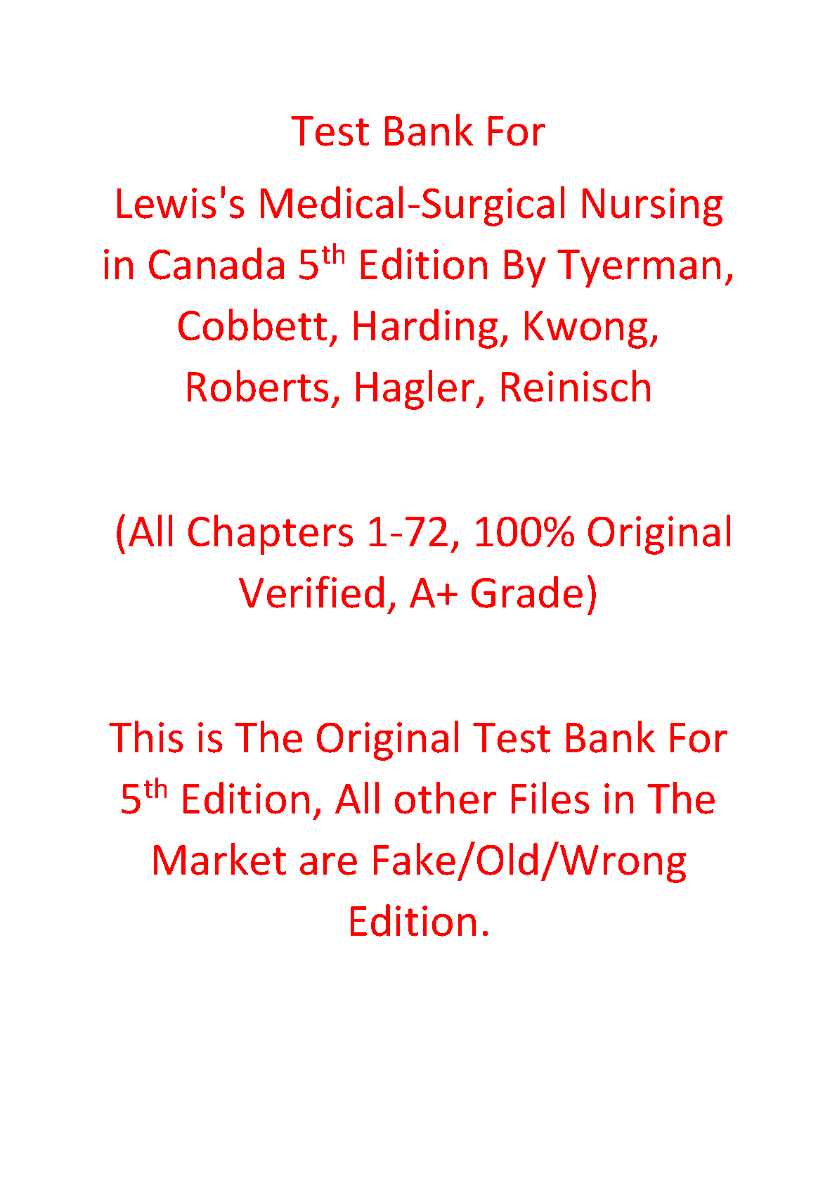 Official Test Bank for Lewis's Medical-Surgical Nursing in Canada, 5th Edition by Jane Tyerman, Shelley L. Cobbett, Mariann M. Harding, Frances D. Kwong, Dottie Roberts, Debra Hagler, and Oliver R. Reinisch