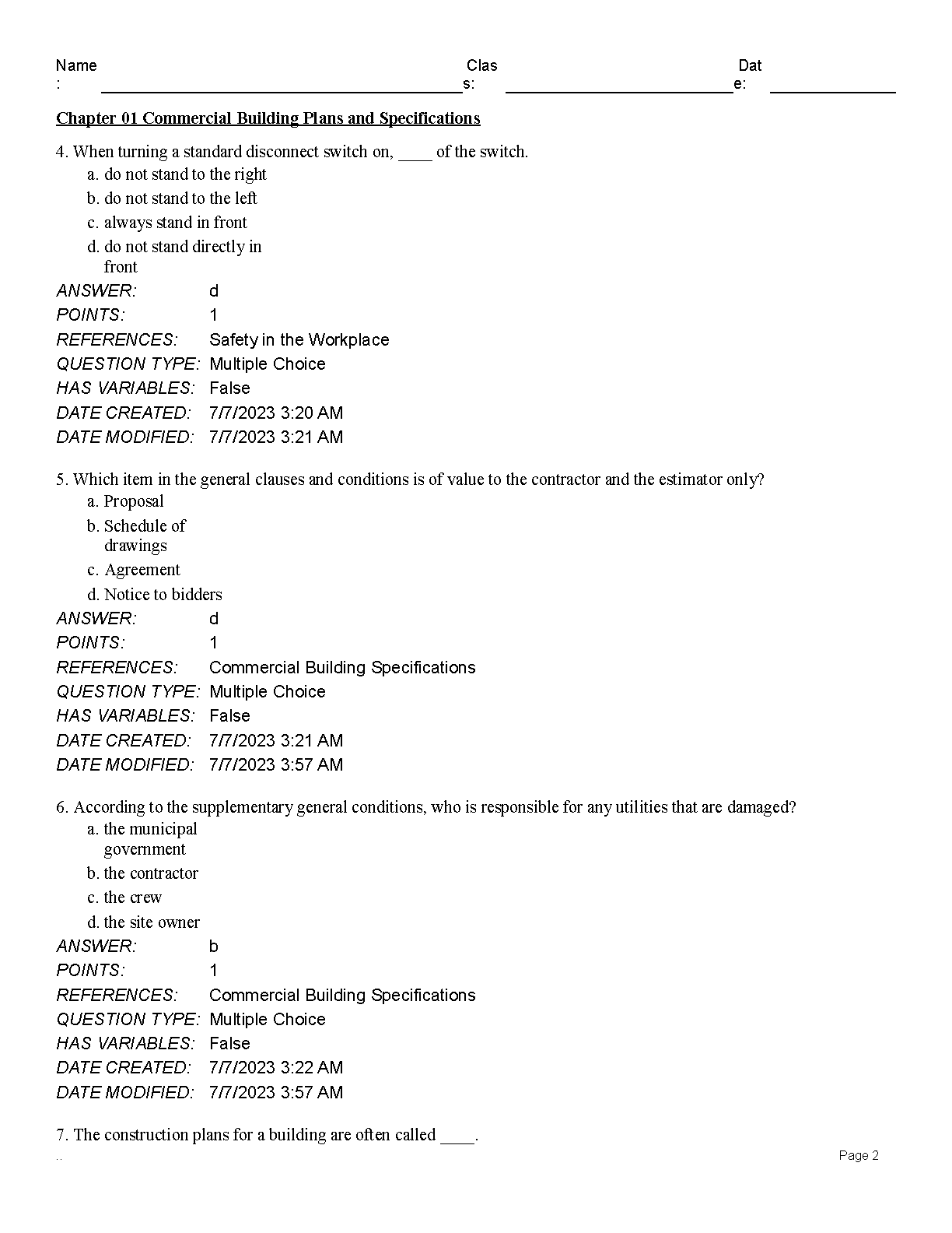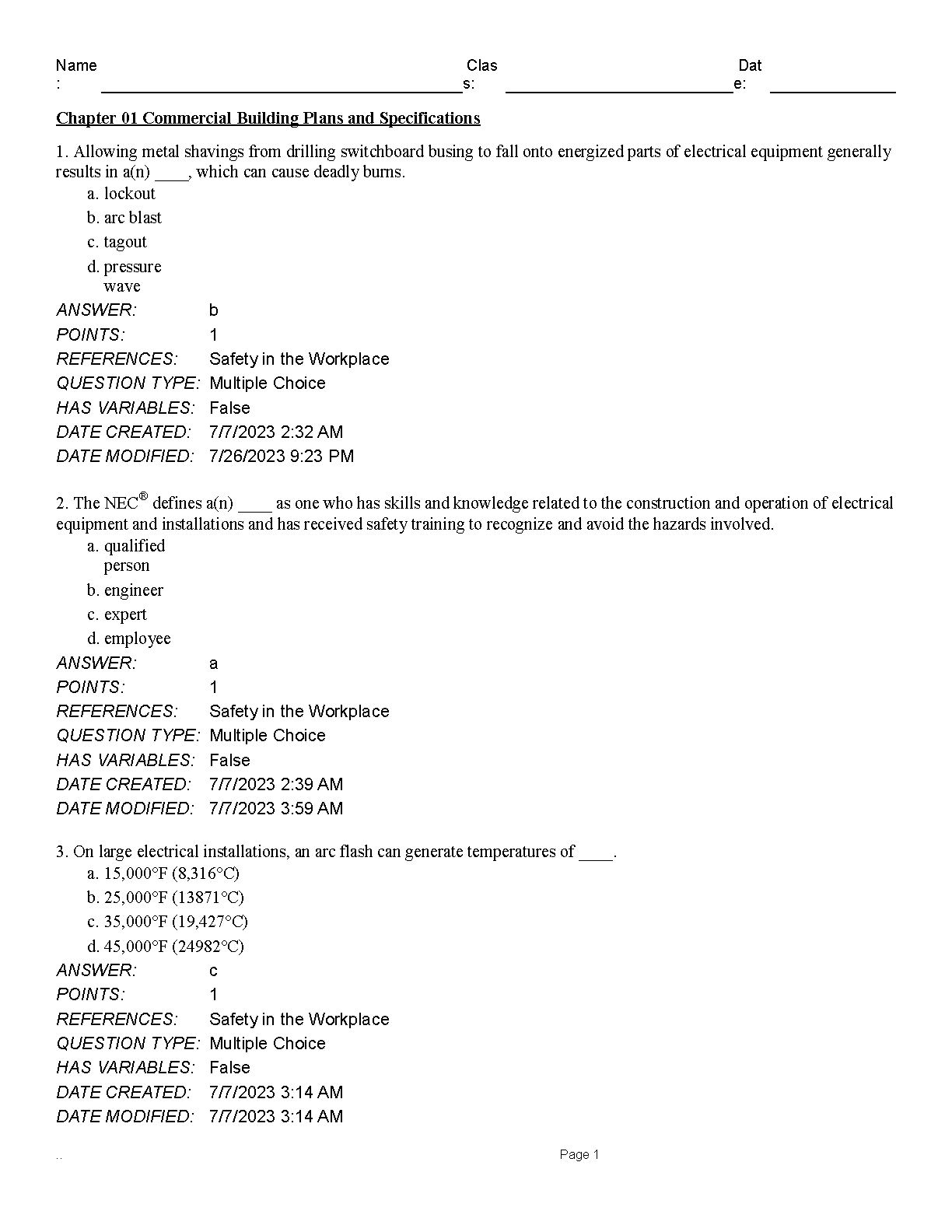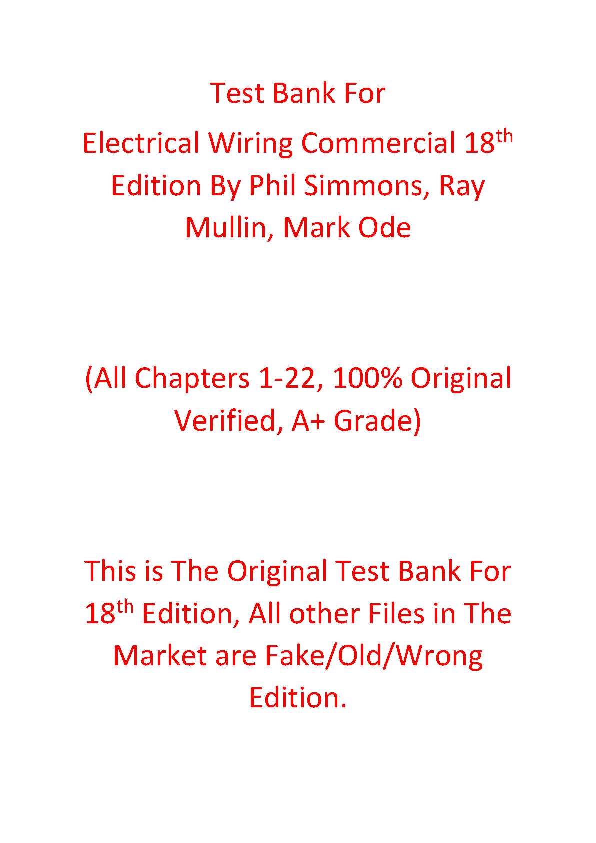 Test Bank for Electrical Wiring Commercial, 18th Edition by Phil Simmons, Ray Mullin, and Mark R. Ode