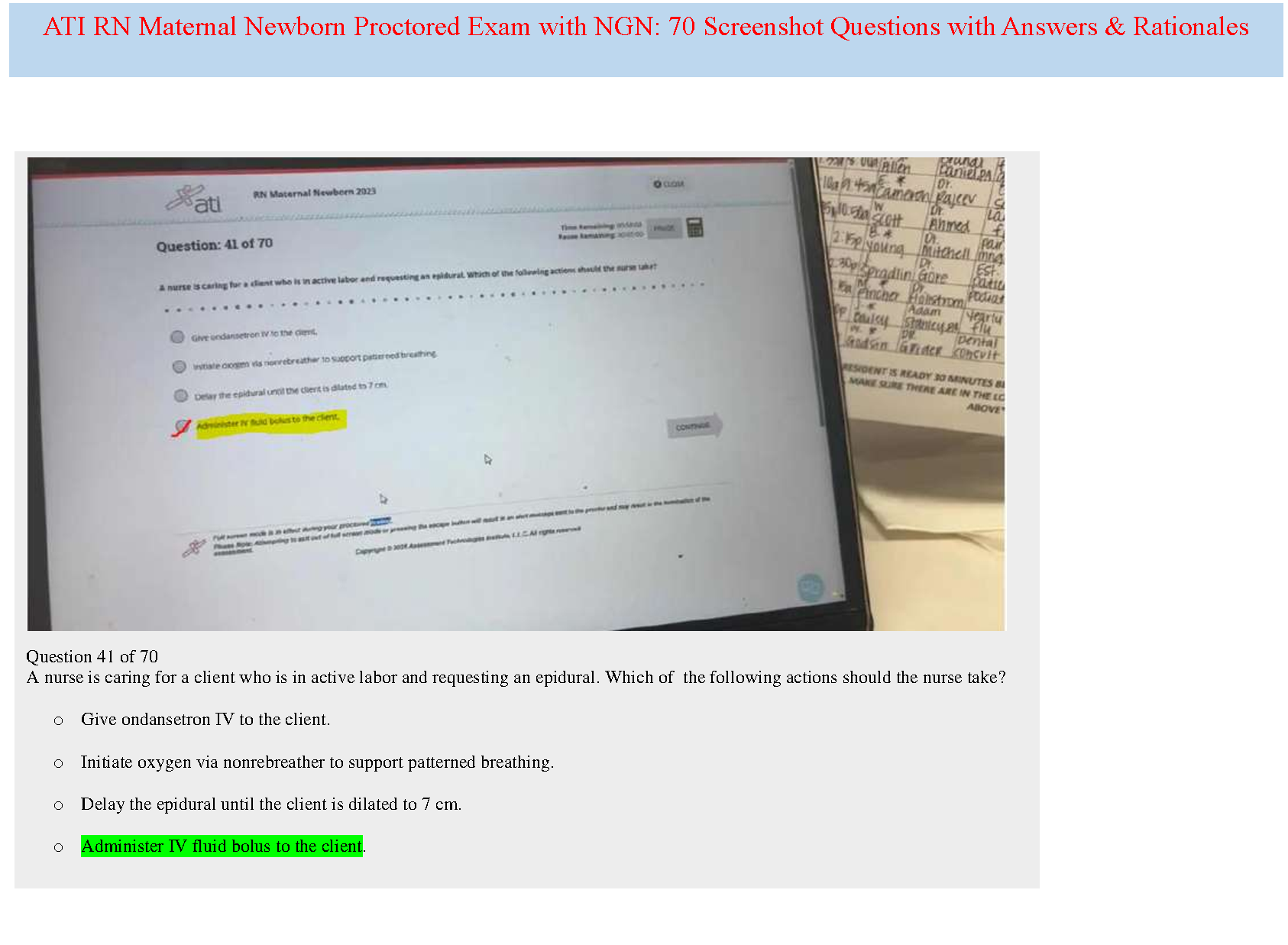 Ace your ATI RN Maternal Newborn Proctored Exam with our comprehensive 2023 test bank! This study guide is specifically designed to help you succeed, featuring 70 screenshot questions meticulously curated from the latest exam version. Each question comes with a detailed answer and rationale, ensuring you understand the core concepts and not just memorize facts. Updated with the latest Next Generation NCLEX (NGN) style questions, this resource provides the most accurate and relevant preparation available. Prepare effectively, boost your confidence, and pass your maternal newborn nursing exam on the first try!