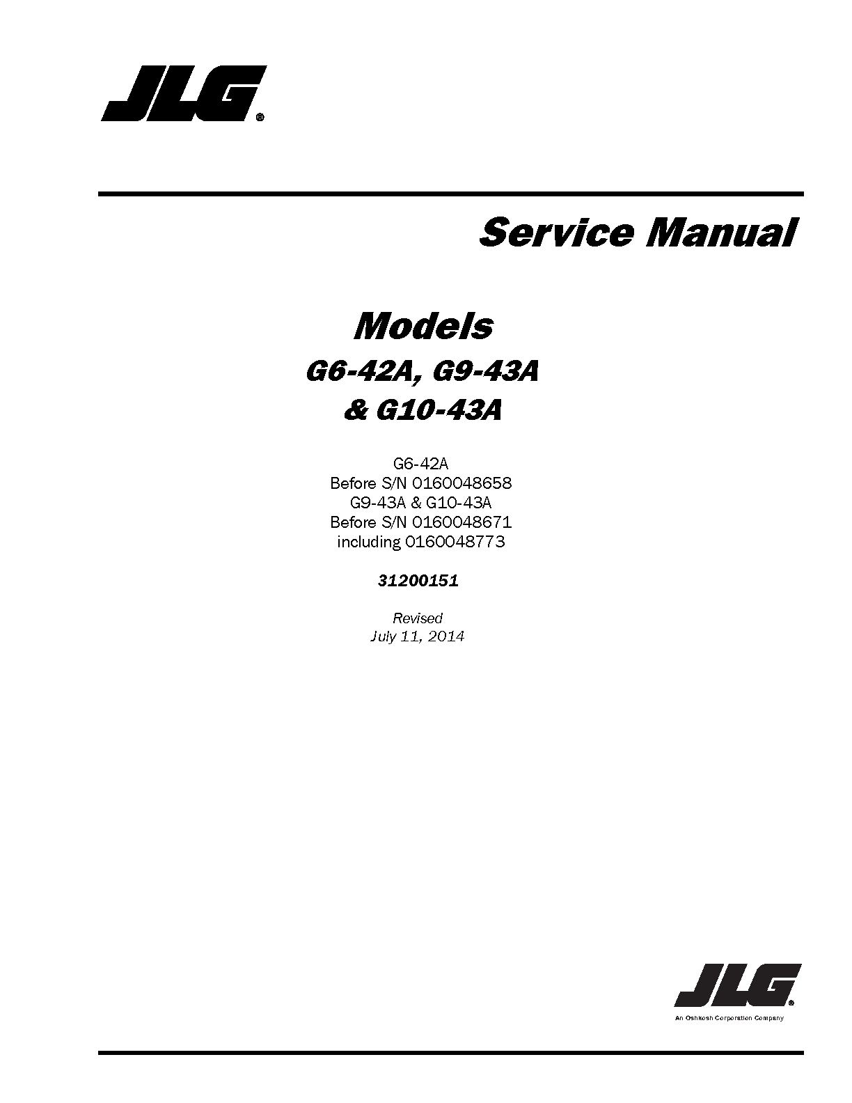Master JLG Telehandler Repair 2025/2026: The Ultimate Service Manual for G6-42A, G9-43A & G10-43A (P/N 31200151 by JLG Industries, Inc.) - Your Key to Passing Certification Exams First Time!