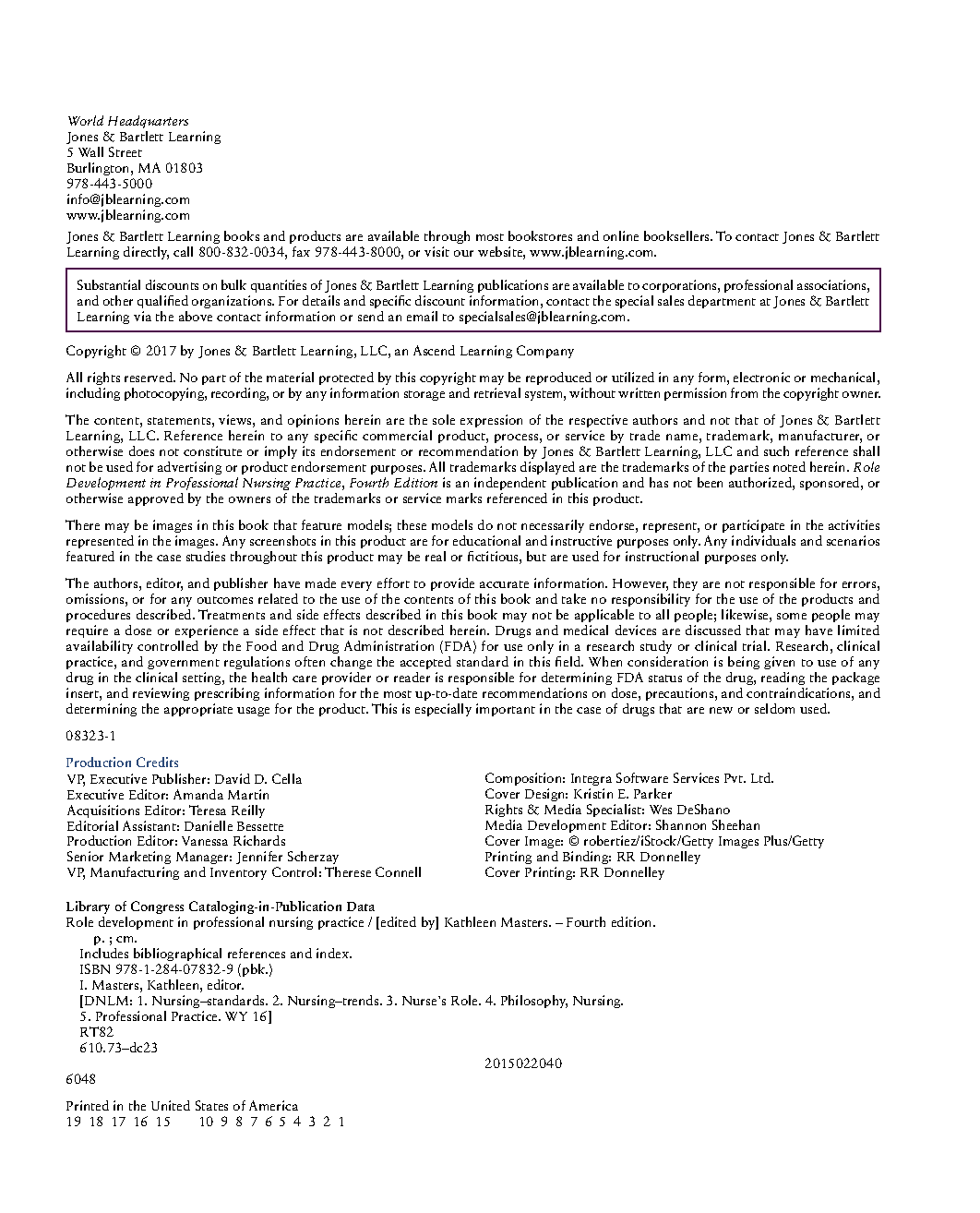 Test Bank for Role Development in Professional Nursing Practice, 4th Edition by Kathleen Masters