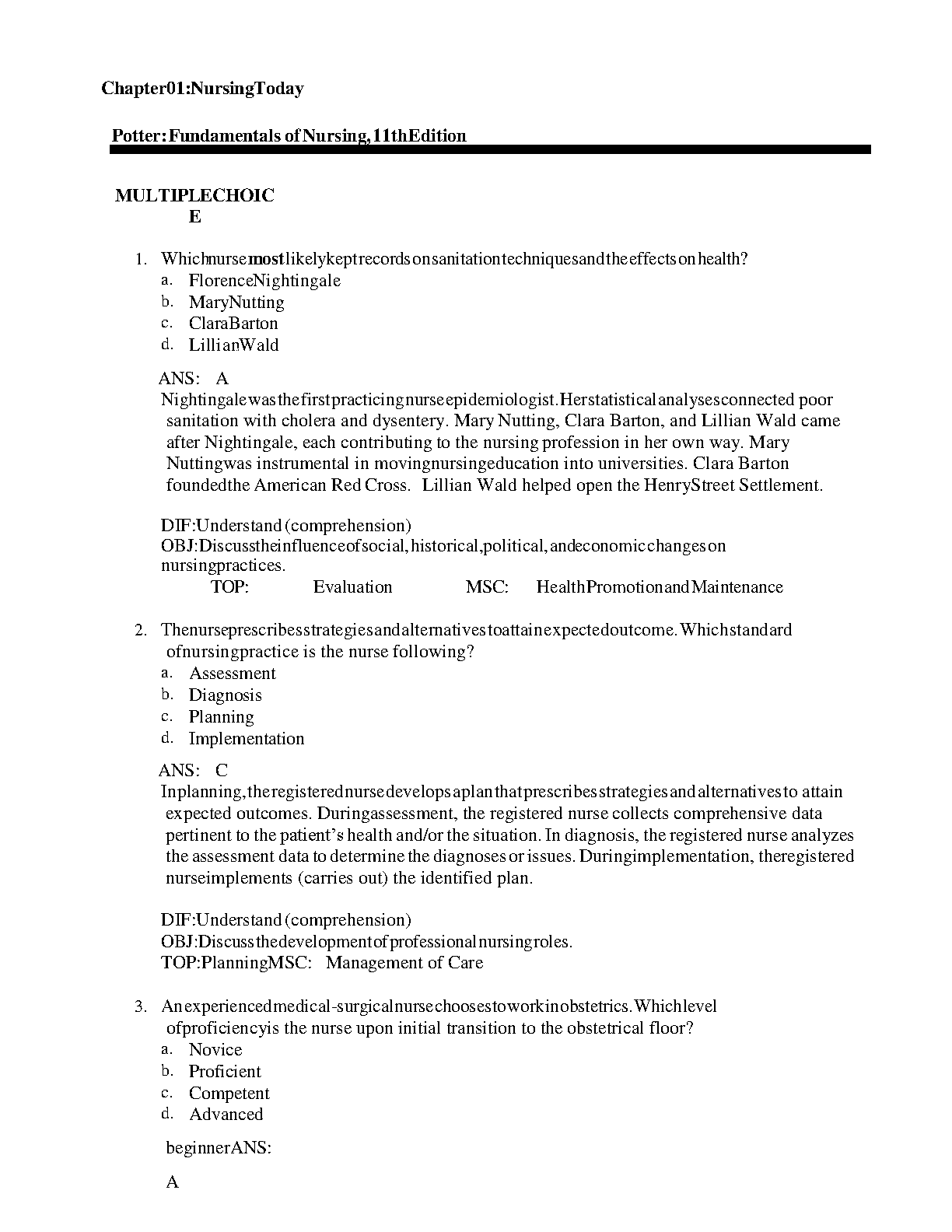 Unlock your full potential and master the core concepts of nursing with the official Test Bank for 'Fundamentals of Nursing,' 11th Edition. This indispensable resource, authored by Potter, Perry, Stockert, and Hall, is packed with a comprehensive collection of practice questions, detailed rationales, and chapter-by-chapter quizzes that mirror the actual exam format. Designed to sharpen your critical thinking and clinical judgment skills, this study aid is your key to acing your exams, building a strong foundation for the NCLEX, and succeeding in your nursing career. Download now and take the first step towards exam excellence!