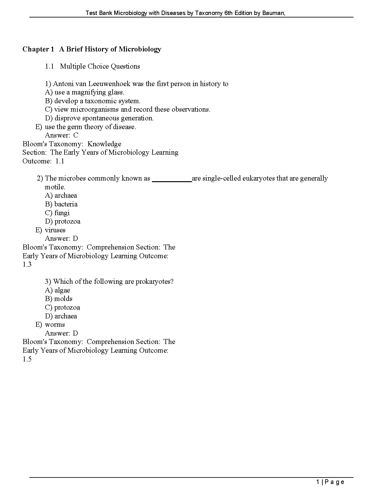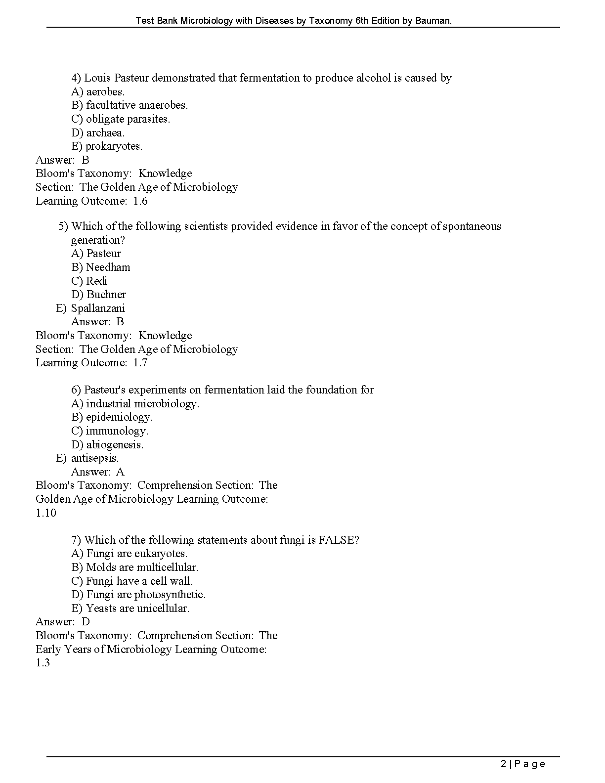 Test Bank for Microbiology with Diseases by Taxonomy, 6th Edition by Robert W. Bauman - All Chapters 1-27 Included