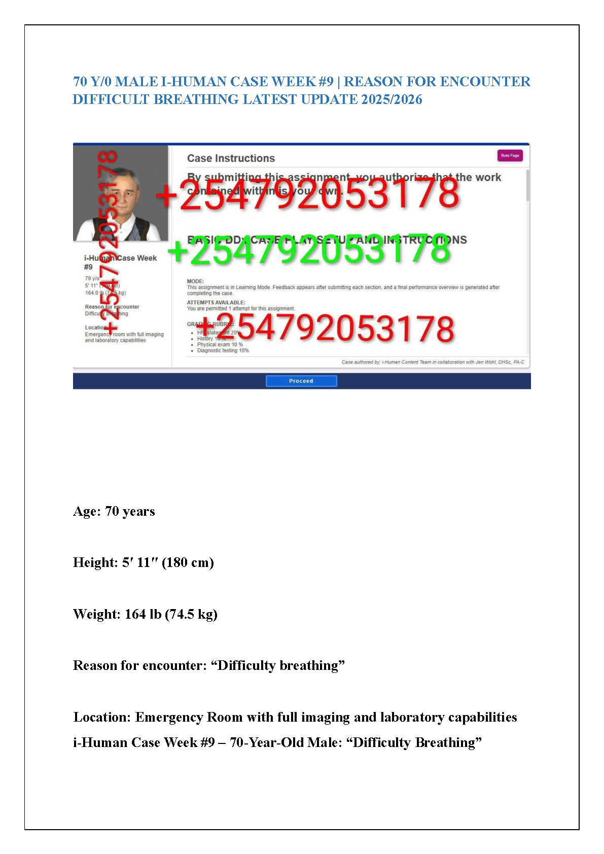 Master i-Human Case Week 9: 70 y/o Male with Difficulty Breathing | Authored by Jen Wohl, DHSc, PA-C | Latest 2025/2026 Edition for First-Attempt Success