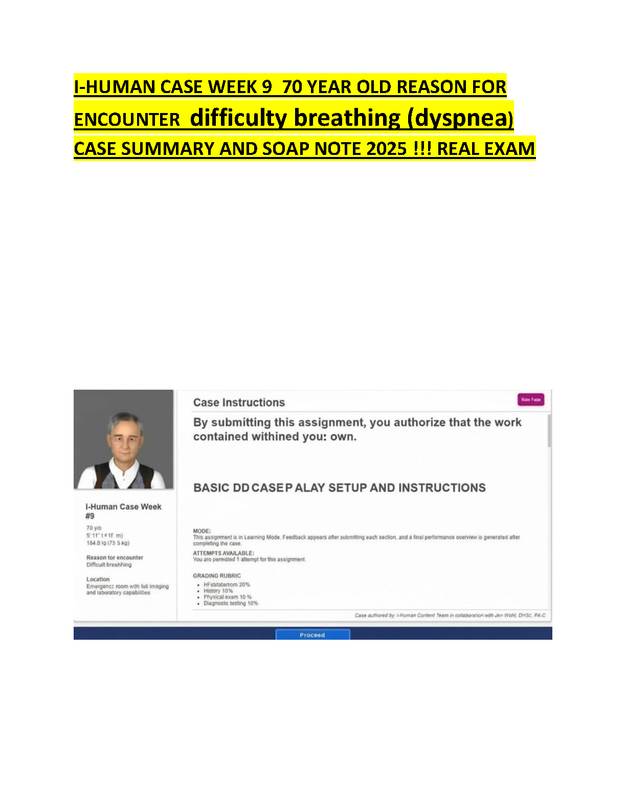 i-Human Case Week 9: 70-Year-Old with Dyspnea (Difficulty Breathing) by Jen Wohl, DHSc, PA-C | Complete Case Summary & SOAP Note for 2025/2026