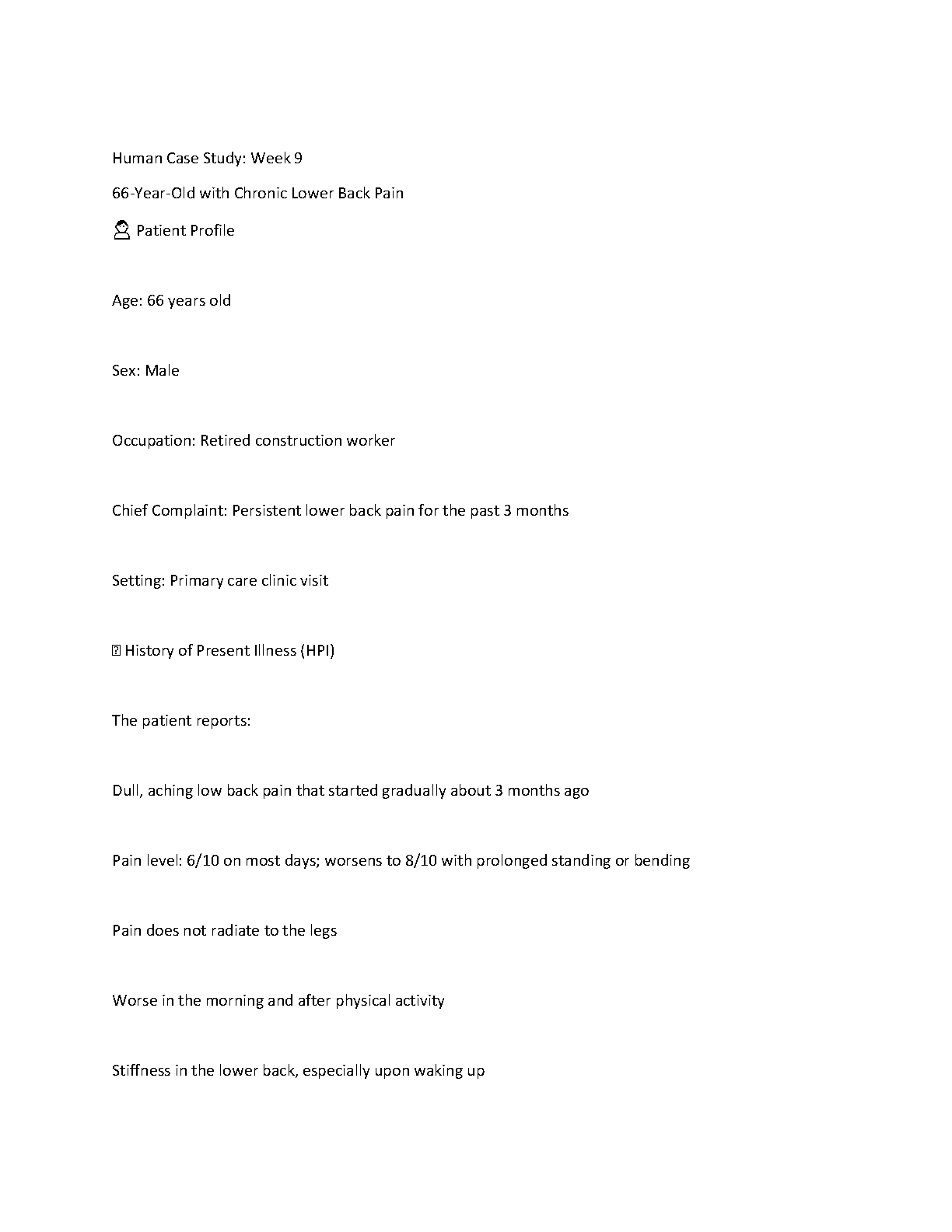 i-Human Week 9 Case Study: 66-Year-Old with Back Pain | Complete Summary & SOAP Note for 2025/2026 Exams
