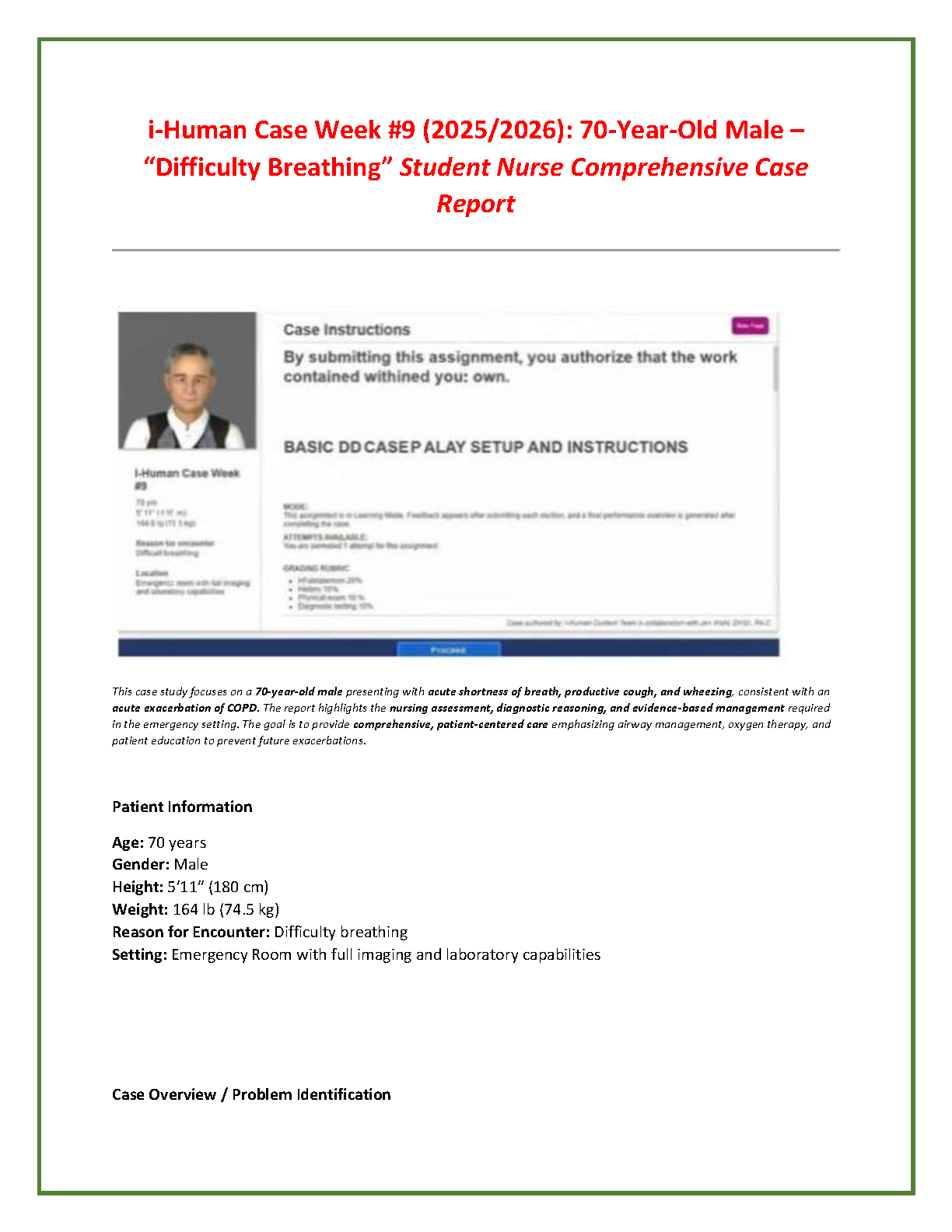 i-Human Case Week #9: 70-Year-Old Male with Difficulty Breathing (COPD Exacerbation) - Verified Comprehensive Report for 2025/2026 | Ace Your Nursing Exams