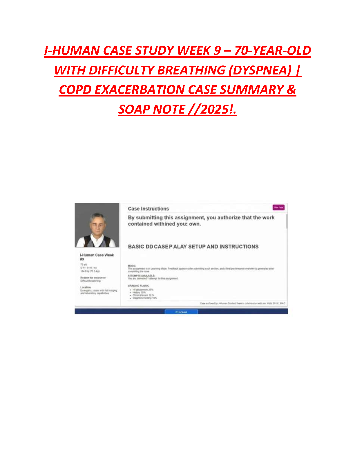 i-Human Case Study Week 9 by Jen Wleklinski & i-Human Team: 70-Year-Old with Dyspnea (COPD Exacerbation) | Complete Case Summary & SOAP Note - Guaranteed Pass 2025/2026