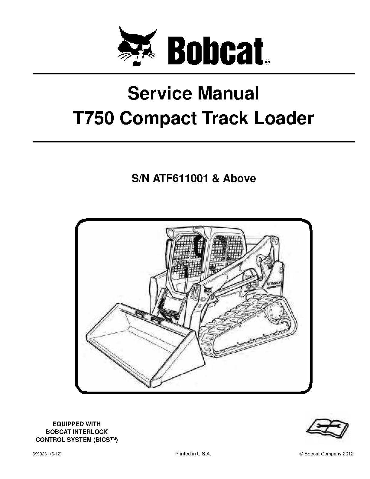 Bobcat T750 Compact Track Loader Service Manual (S/N ATF611001+) 2012 Edition by Bobcat Company | Technician's Test Bank & Repair Guide