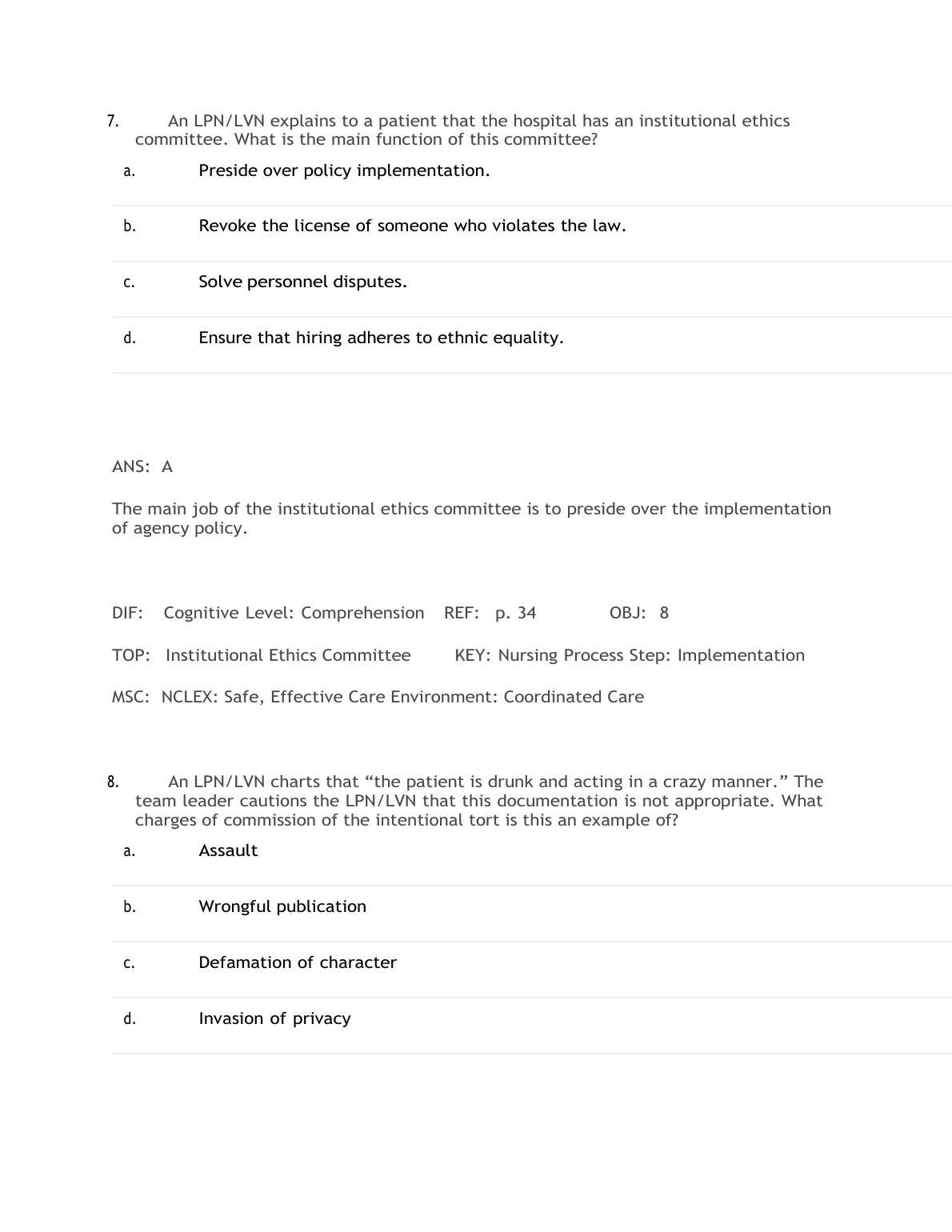Test Bank For Introduction To Medical Surgical Nursing, 6th Edition by Linton (Chapter 03: Legal and Ethical Considerations). DOWNLOAD on www.hackedexams.com INSTANTLY.