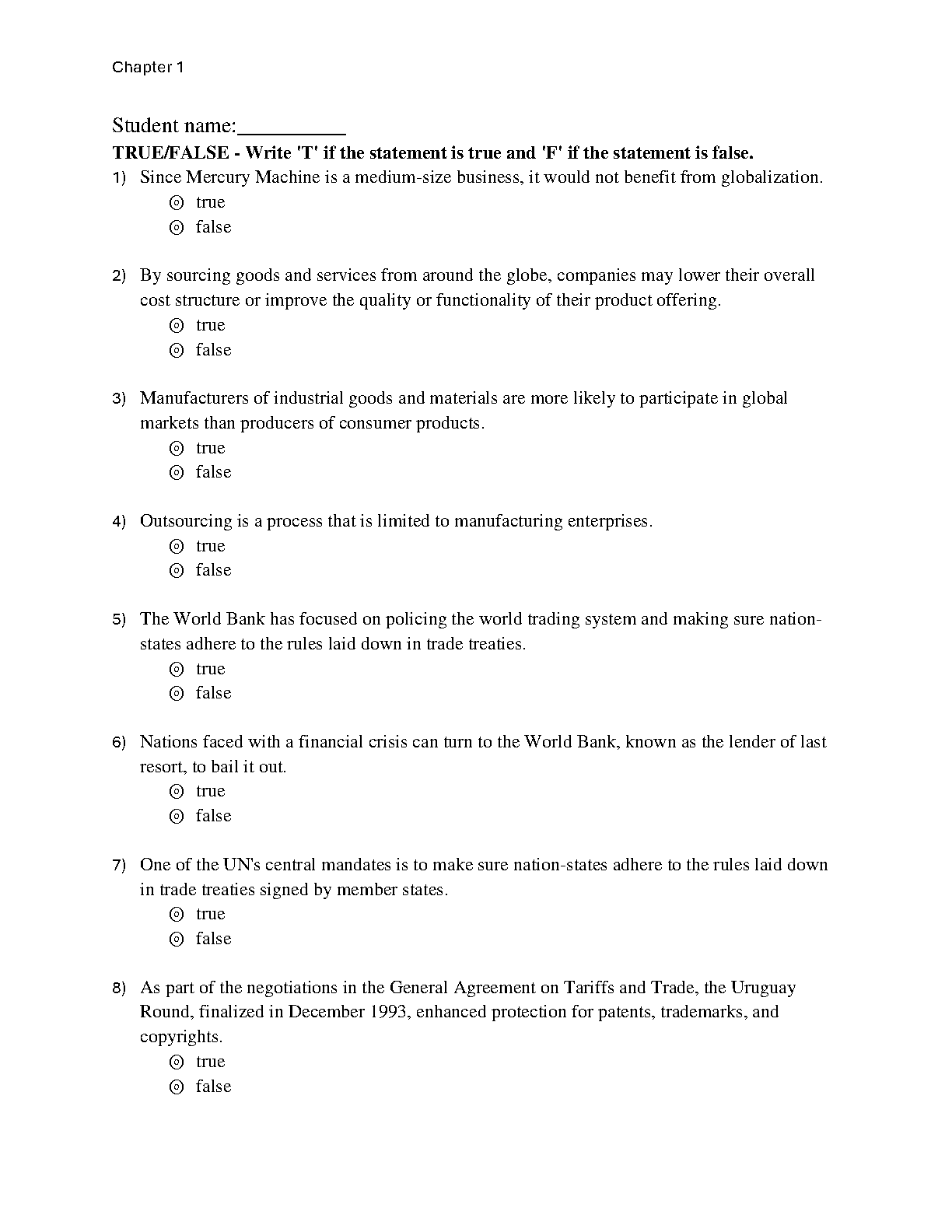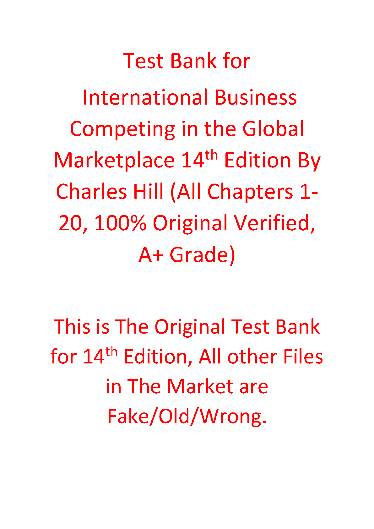 Test Bank for International Business: Competing in the Global Marketplace, 14th Edition by Charles W. L. Hill & G. Tomas M. Hult (Complete Chapters 1-20)