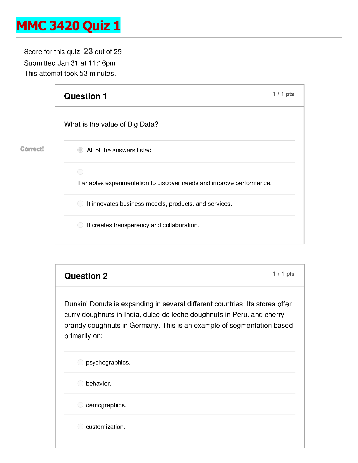Unlock your potential and ace the MMC 3420 course with our meticulously prepared Test Bank for Quiz 1. This essential study resource provides a complete set of questions and expertly verified answers, focusing on core topics like the strategic value of Big Data and real-world applications of market segmentation. Equip yourself with this guide to deepen your understanding, confidently tackle your exams, and achieve outstanding results in Digital Media Metrics.