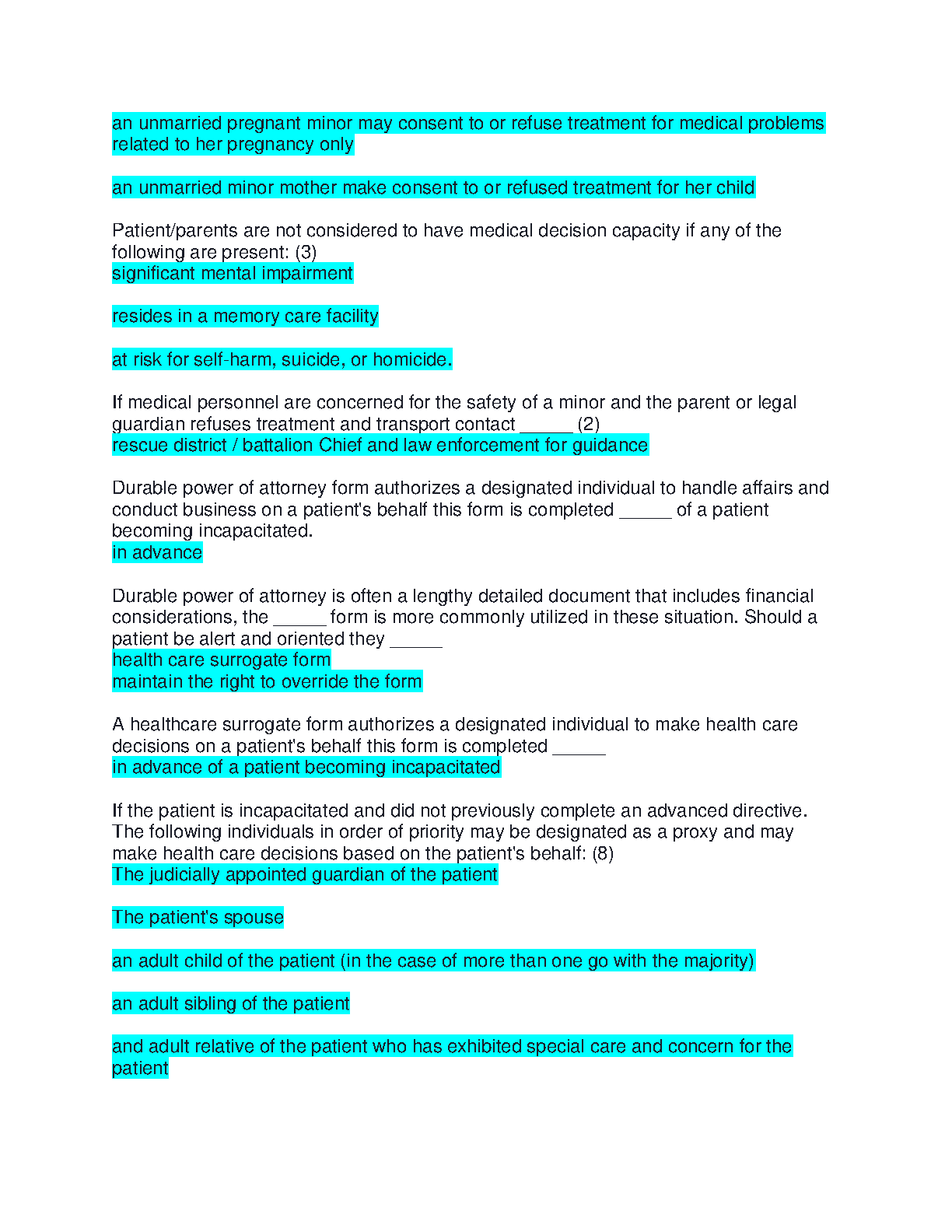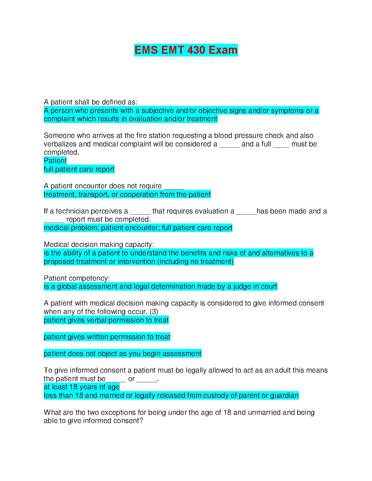 Get ready to ace your EMS EMT 430 exam with our comprehensive test bank. This study guide features a complete collection of questions and verified answers covering all essential topics, from patient definitions and informed consent to medical decision-making capacity and legal competency. Designed to mirror the actual exam format, this resource is your key to understanding complex concepts and building the confidence needed to pass on your first attempt. Stop worrying about resits and start studying smarter with our expertly prepared EMS EMT 430 test bank. Download now for immediate access and secure your high score!