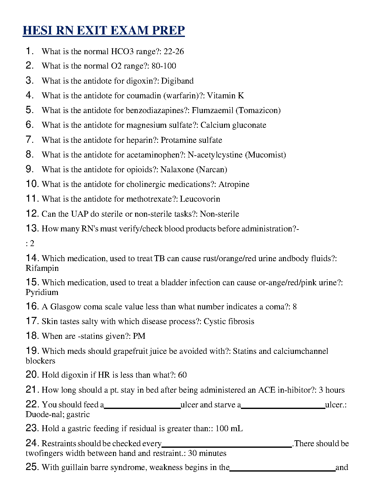Master the HESI RN Exit Exam with this essential Q&A study guide, fully updated for the 2025/2026 academic year. This concise resource covers the most frequently tested topics, including critical pharmacology, medication antidotes, normal lab values, and essential nursing procedures. Designed for efficient learning and quick memorization, this guide is your key to walking into the exam with confidence and securing a pass on your first try, helping you avoid costly and stressful resits.
