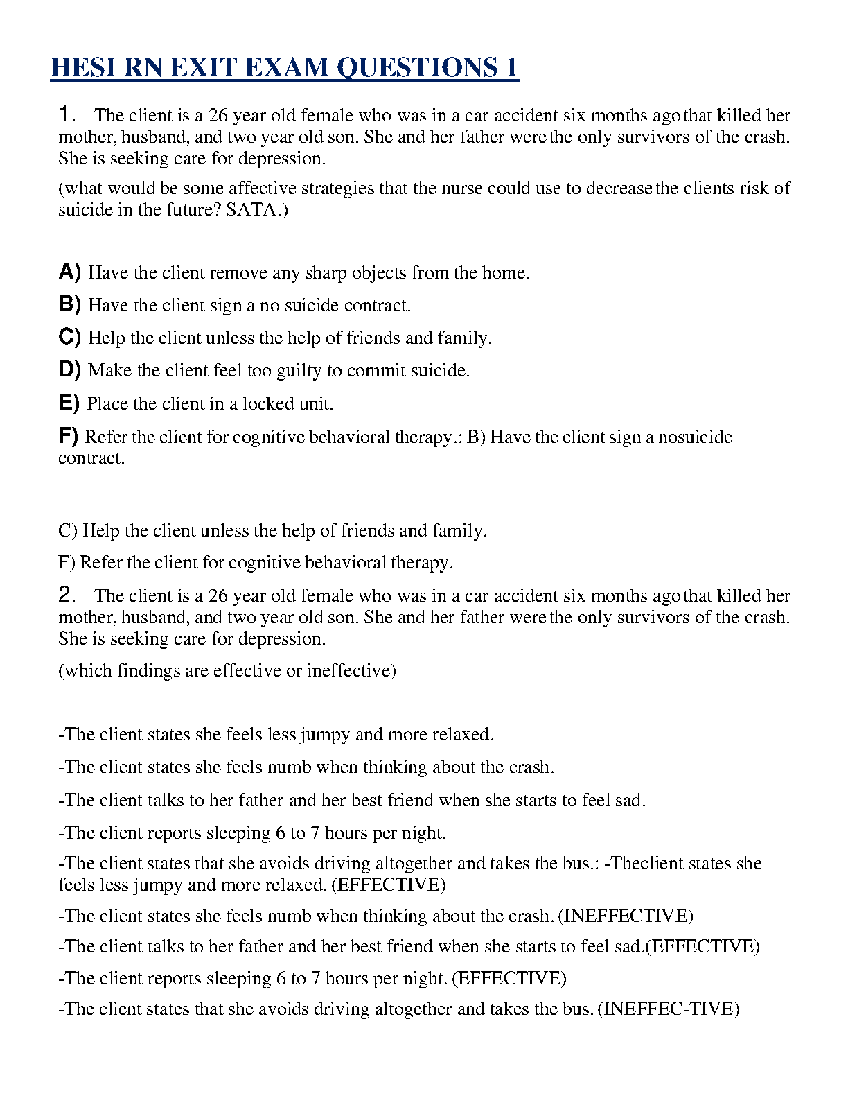 Ace your HESI RN Exit Exam with our expertly curated 2025/2026 test bank. This essential study guide features a wide array of practice questions that mirror the actual exam, covering critical nursing scenarios such as patient depression, suicide risk assessment, and evaluating therapeutic effectiveness. Designed for nursing students aiming for first-time success, this resource will sharpen your clinical judgment and boost your confidence. Avoid the stress of resits and secure your path to becoming a Registered Nurse with this ultimate preparation tool.
