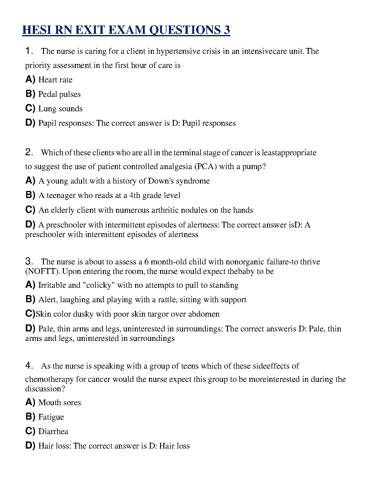 Ace your HESI RN Exit Exam with our latest 2025/2026 study guide! This comprehensive resource features a curated collection of exam-style questions complete with verified answers. Designed to mirror the actual test, this guide covers critical nursing topics to ensure you're fully prepared. Master key concepts, build your confidence, and walk into your exam ready to pass on the very first try. Avoid resits and fast-track your nursing career with this essential preparation tool.
