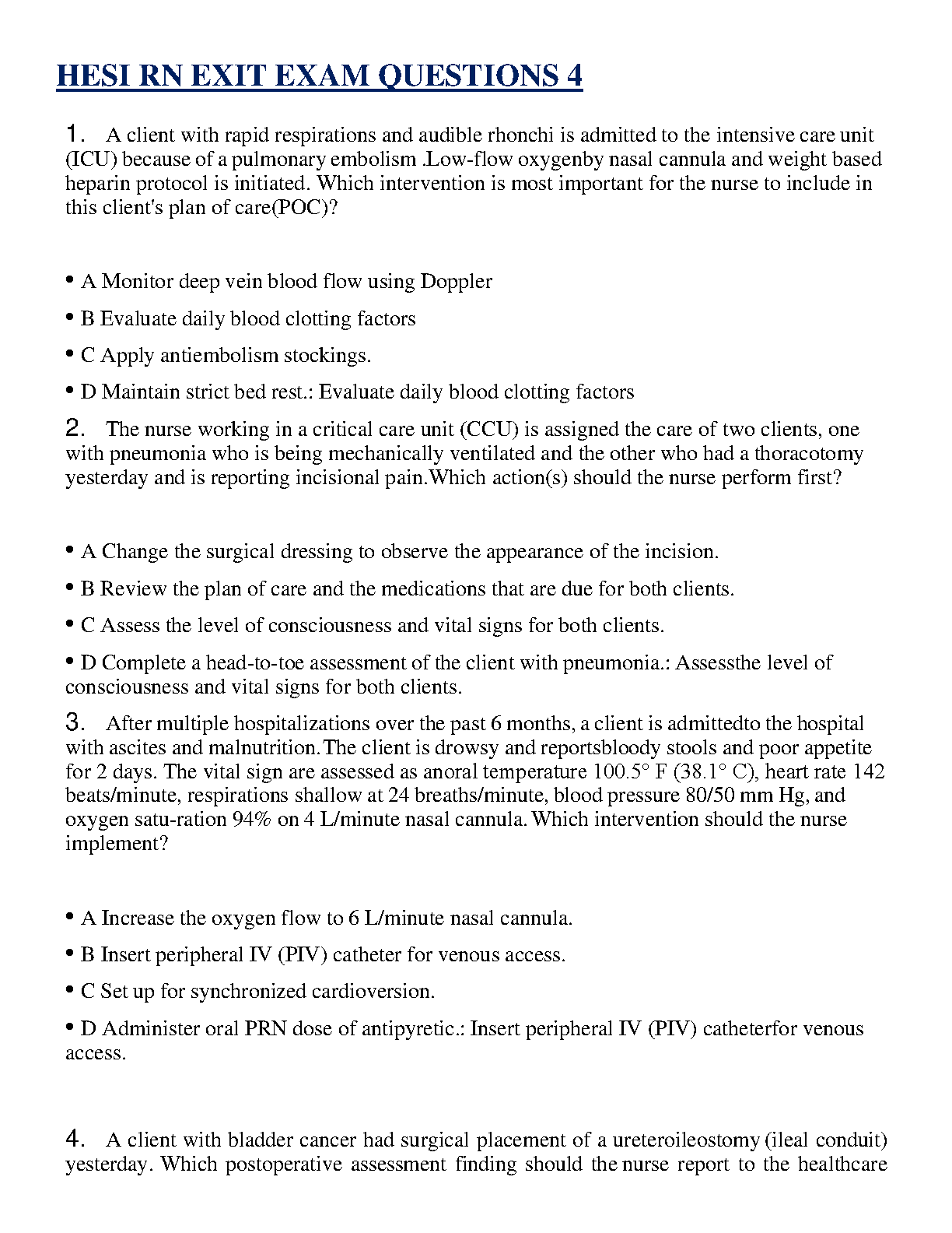 HESI RN Exit Exam Test Bank (Q&A) - Latest 2025/2026 Edition for First-Attempt Success