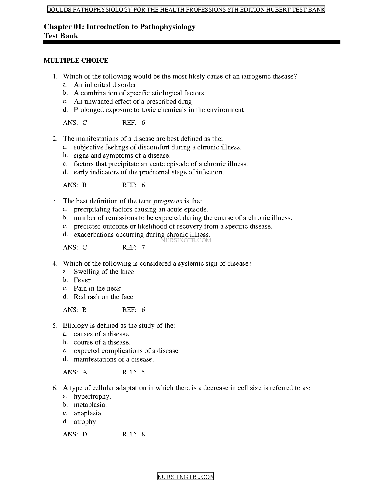 Master your pathophysiology course with the official Test Bank for 'Gould's Pathophysiology for the Health Professions, 6th Edition' by Hubert and VanMeter. This indispensable study aid provides hundreds of practice questions and answers, mirroring the format and difficulty of your actual exams. Deepen your understanding of complex disease processes, pinpoint areas for improvement, and walk into your tests with confidence. This complete collection covers all chapters, ensuring you are fully prepared to succeed.