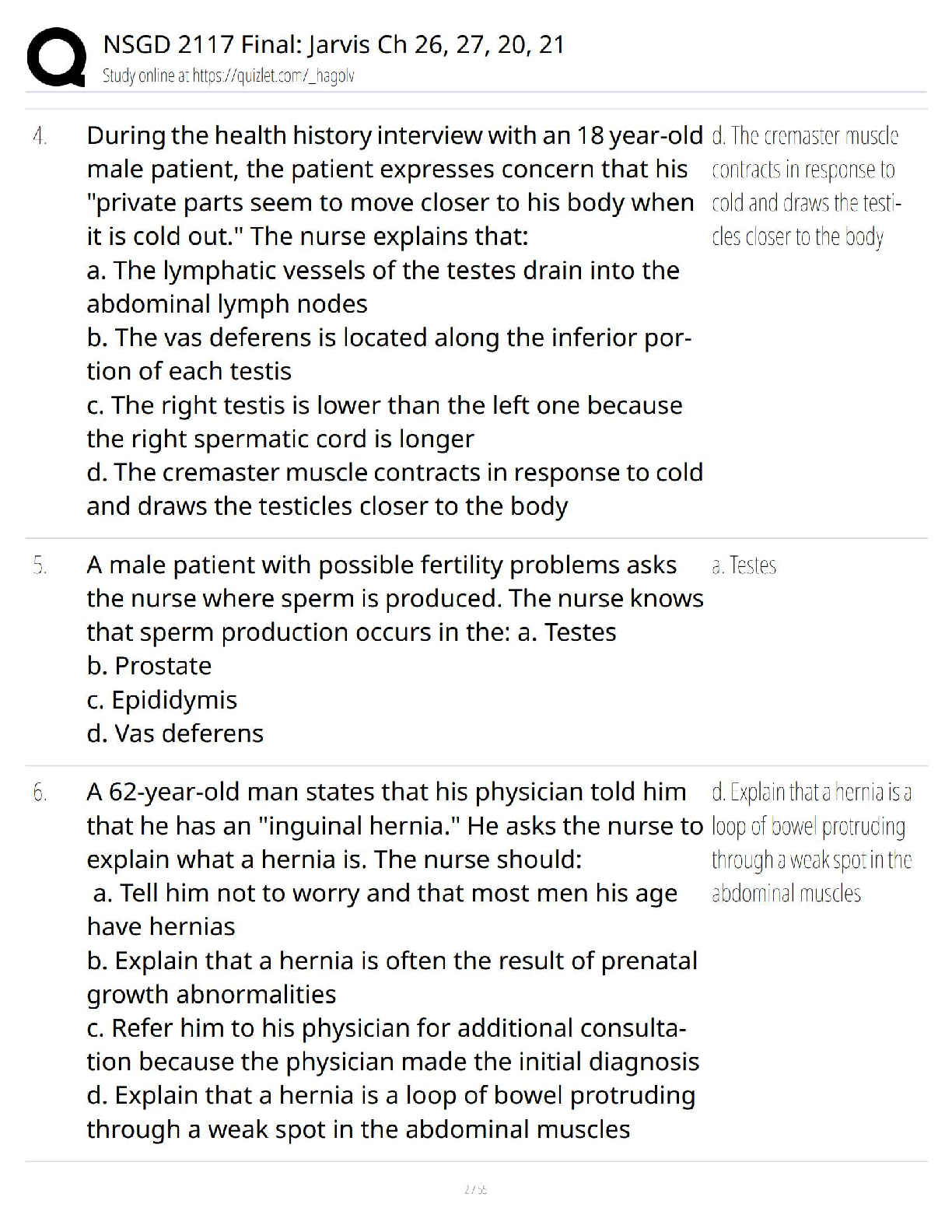 Jarvis Physical Examination and Health Assessment 9th Edition Test Bank by Carolyn Jarvis, Ann L. Eckhardt & Denise T. Tvis - Chapters 20, 21, 26, 27 (NSGD 2117 Final Exam Q&A)
