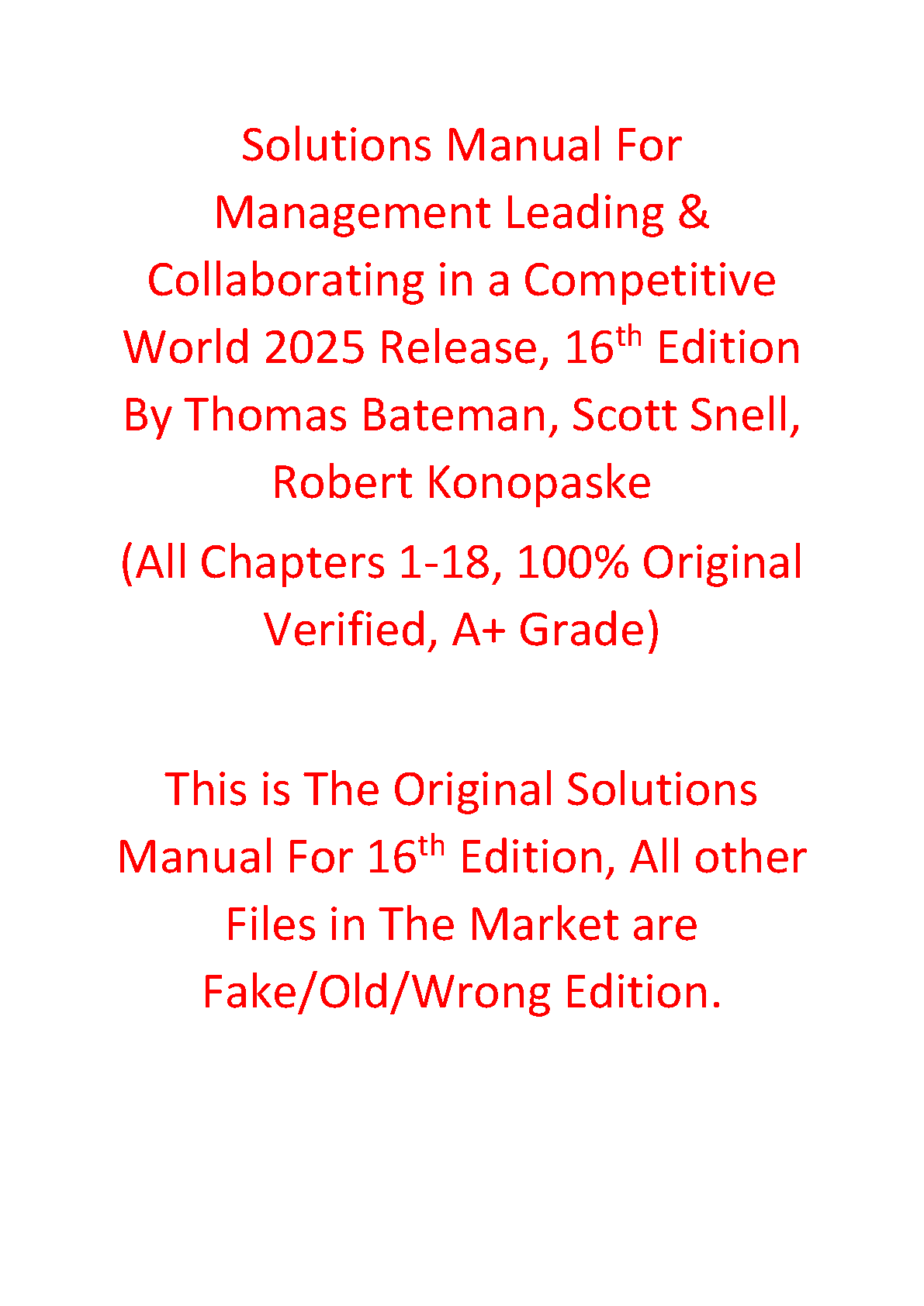 Solutions Manual for Management: Leading & Collaborating in a Competitive World, 16th Edition by Thomas S. Bateman, Scott A. Snell, Robert Konopaske