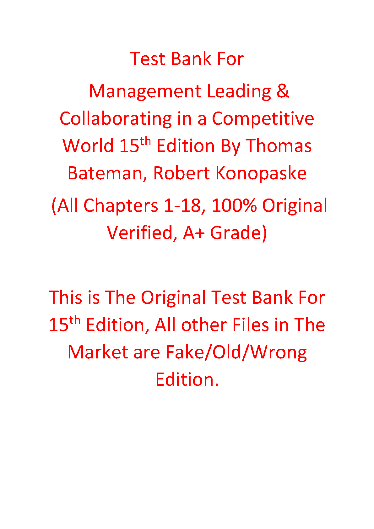 Test Bank for Management: Leading & Collaborating in a Competitive World, 15th Edition by Thomas S. Bateman, M. Scott Snell, Robert Konopaske