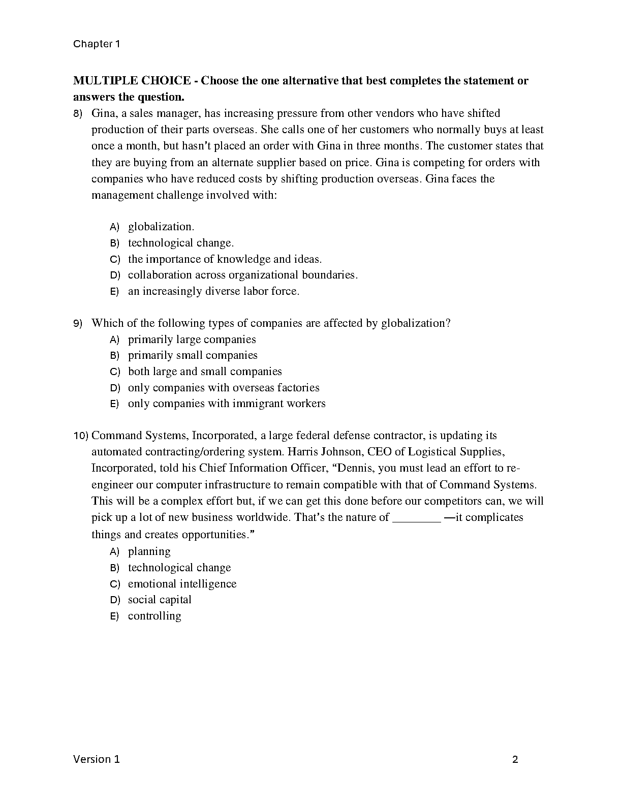 Achieve academic excellence with the official Test Bank for 'Management: Leading & Collaborating in a Competitive World,' 15th Edition, authored by Bateman, Snell, and Konopaske. This is not just a study guide; it's a comprehensive resource covering all 18 chapters with a vast collection of exam-style questions, including multiple-choice, true/false, and short answer questions. Every question is 100% verified and designed to mirror the actual exams, ensuring you're fully prepared to earn an A+ grade. Gain instant access to this authentic, publisher-sourced material and master key management concepts to ace your course.
