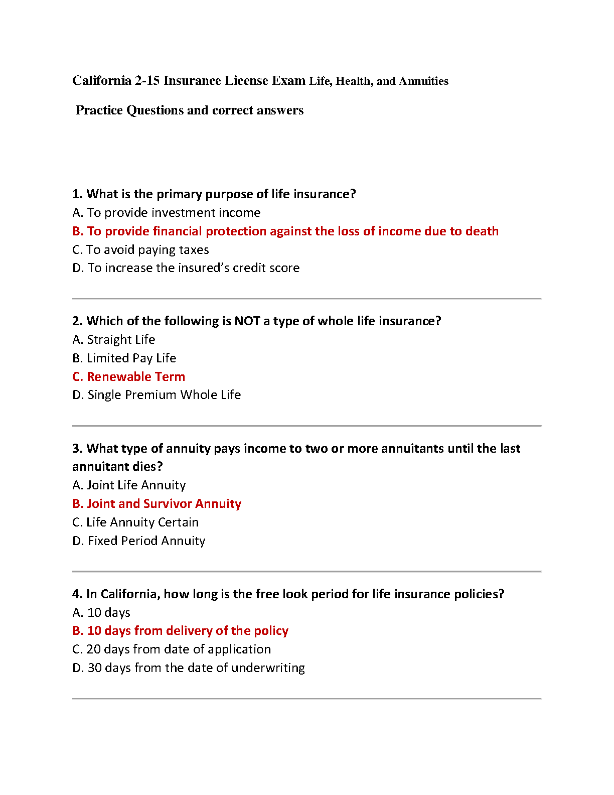 Get ready to ace your California 2-15 Insurance License Exam with our comprehensive test bank. This guide includes a curated set of practice questions with verified correct answers, covering all essential topics in Life, Health, and Annuities. Updated for the 2025/2026 testing cycle, this resource is designed to help you master the material, build your confidence, and pass the exam on your very first attempt, avoiding costly resits. Stop cramming and start practicing with the questions that mirror the real exam!