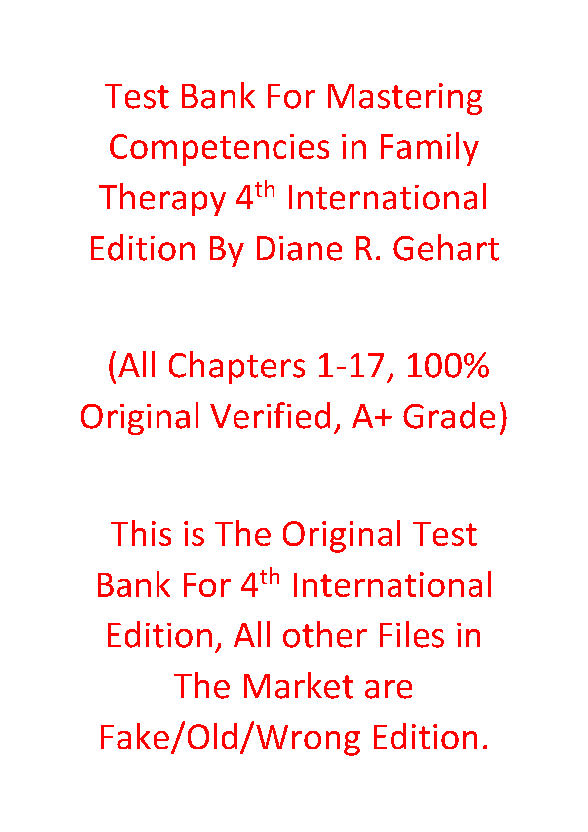Official Test Bank for Mastering Competencies in Family Therapy, 4th International Edition by Diane R. Gehart