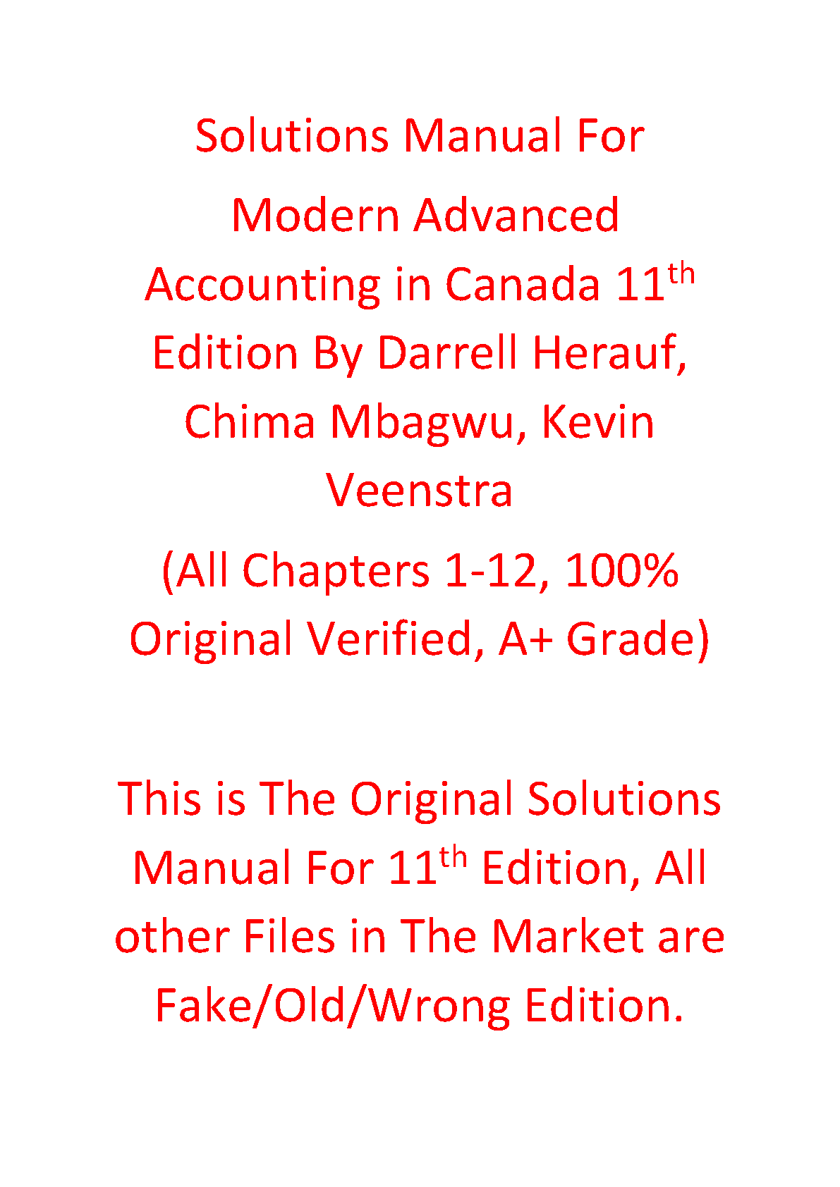 Solutions Manual for Modern Advanced Accounting in Canada, 11th Edition by Darrell Herauf, Chima Mbagwu, Kevin Veenstra