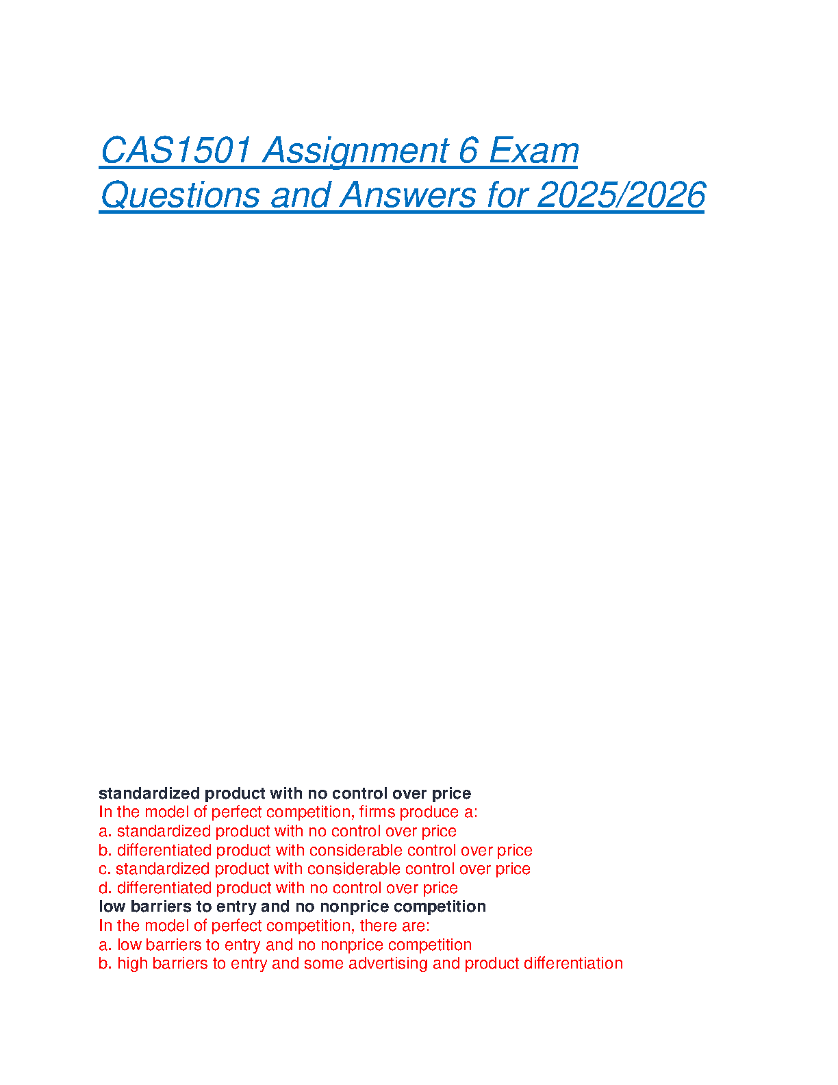 Achieve top marks in CAS1501: Perspectives on Accountancy with this essential Assignment 6 Test Bank, fully updated for the 2025/2026 academic year. This meticulously prepared resource contains a wide range of potential exam questions along with their detailed, correct answers. It's the perfect study aid to deepen your understanding of core concepts, streamline your revision process, and build confidence for your exams. Get ahead of the curve, pass your exam with flying colors on the first attempt, and secure the grade you deserve. Instantly downloadable for your convenience.