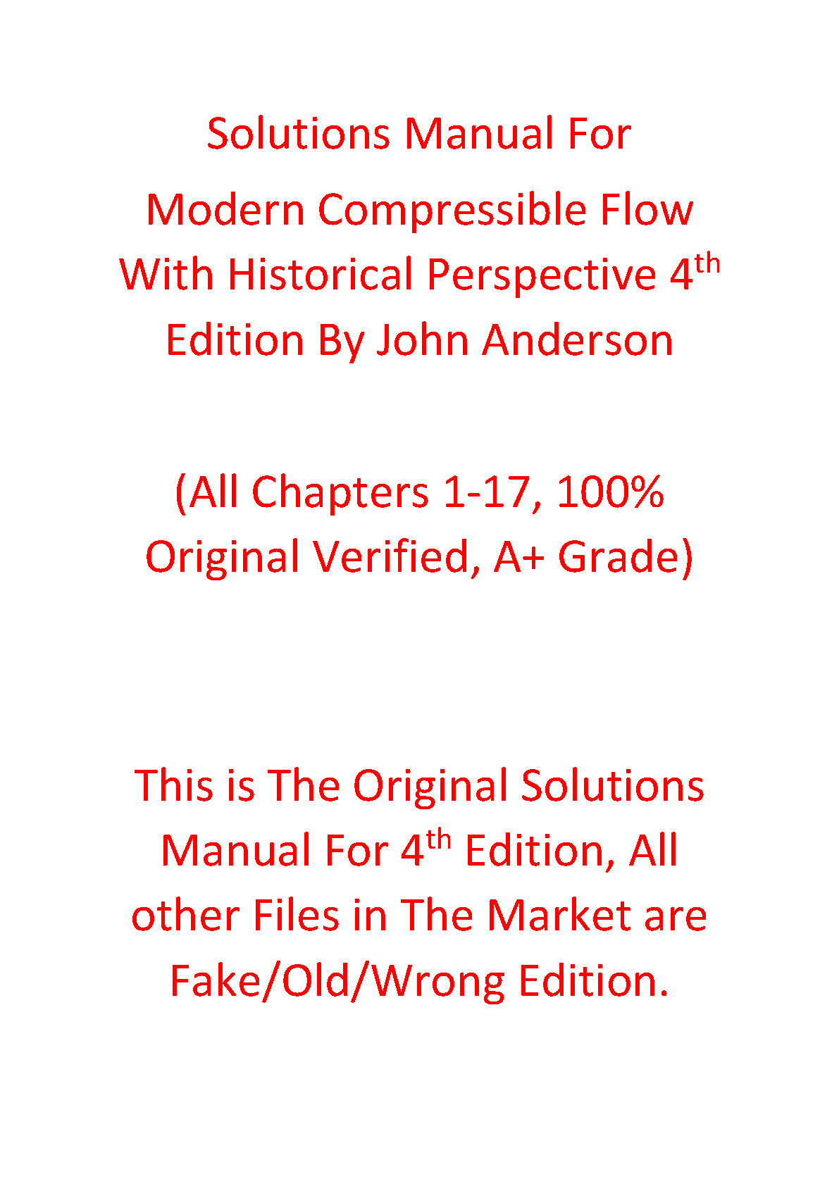 Official Solutions Manual for Modern Compressible Flow: With Historical Perspective, 4th Edition by John D. Anderson Jr. (Chapters 1-17)