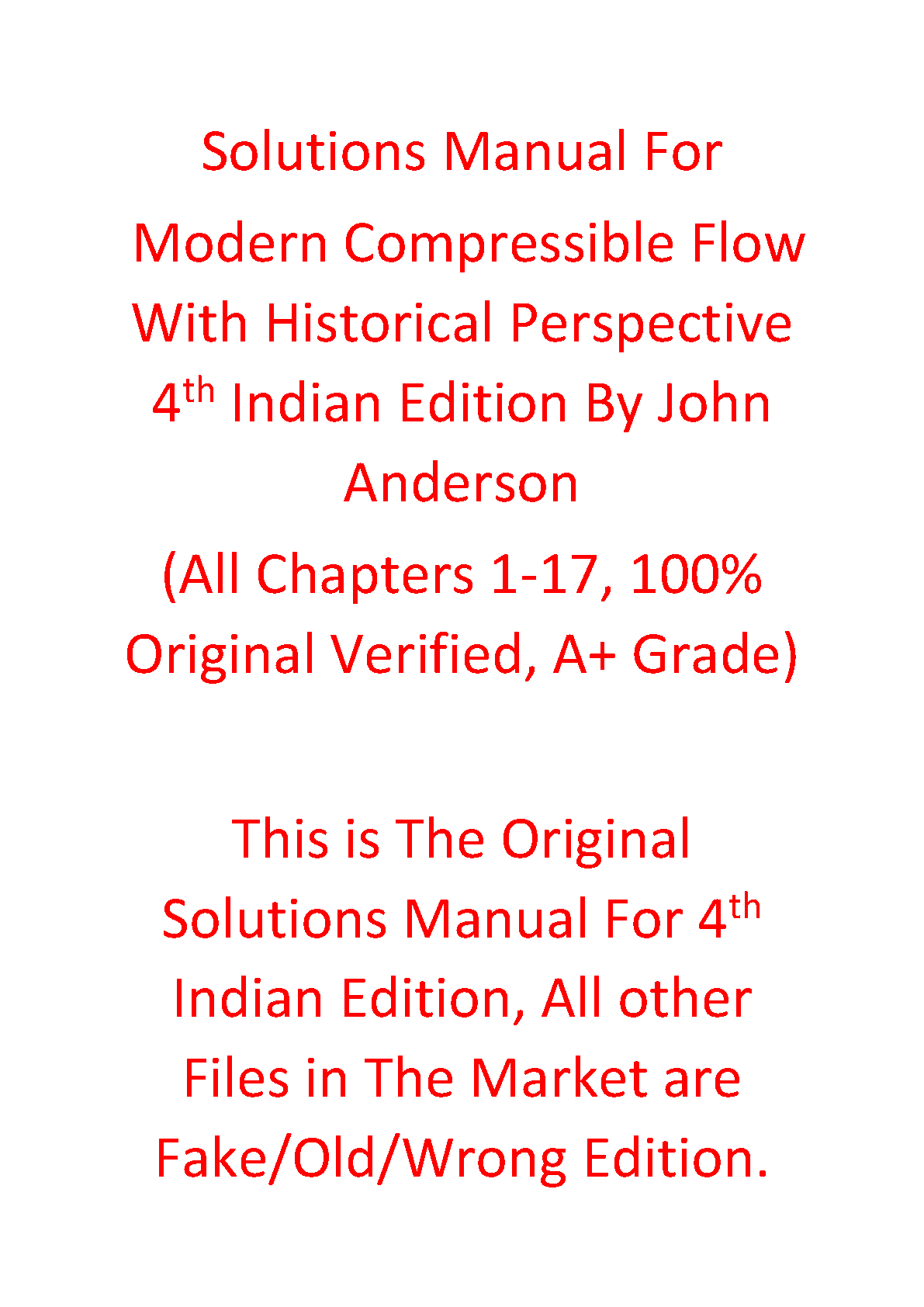Master the principles of fluid dynamics with the complete and verified Solutions Manual for 'Modern Compressible Flow: With Historical Perspective,' 4th Indian Edition by the renowned author John D. Anderson Jr. This invaluable resource provides detailed, step-by-step solutions for all problems across Chapters 1-17. It's the ultimate study companion designed to enhance your understanding, help you prepare effectively for exams, and achieve top grades. Don't settle for incomplete or incorrect files; get the authentic, A+ grade manual today!