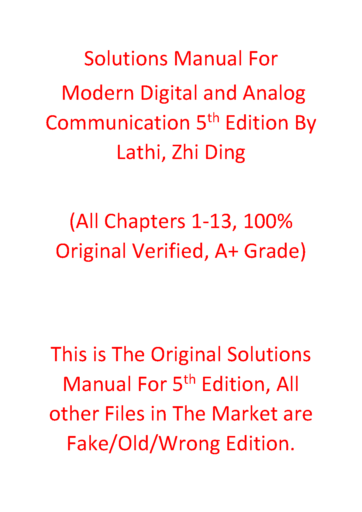 Unlock your academic potential with the official and verified Solutions Manual for 'Modern Digital and Analog Communication,' 5th Edition, authored by B. P. Lathi and Zhi Ding. This comprehensive resource contains detailed, step-by-step solutions for every problem in all 13 chapters of the textbook. Guaranteed to be the authentic 5th Edition version, this manual is an invaluable tool for mastering course material, completing assignments accurately, and preparing effectively for exams to achieve an A+ grade.
