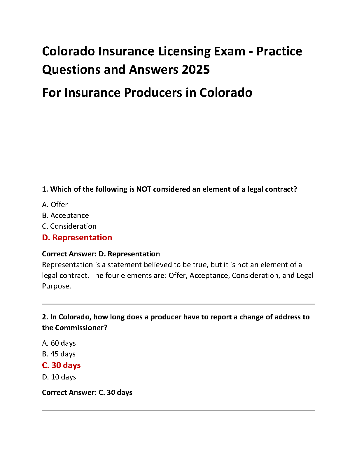 Colorado Insurance Producer Licensing Exam Test Bank 2025: Q&A Study Guide for First-Attempt Success