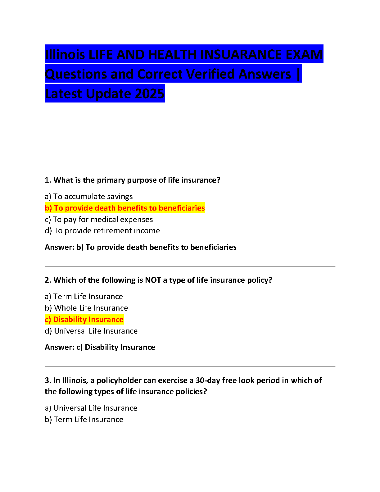 Illinois Life and Health Insurance Exam Test Bank 2025 Edition | Real Questions and 100% Correct Verified Answers