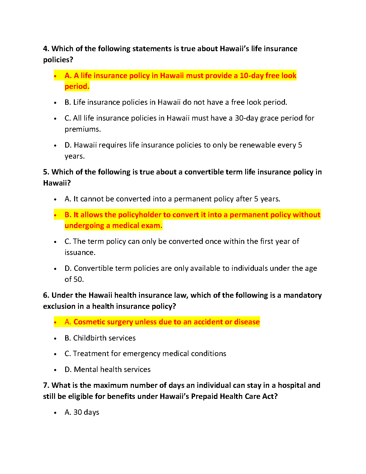 Hawaii Life and Health Insurance Test Bank 2025-2026: Complete Exam Questions and Verified Answers for First-Time Pass